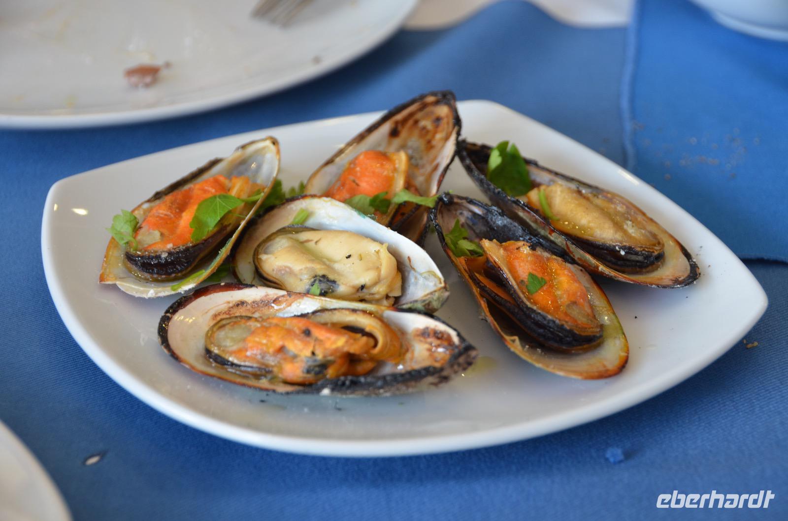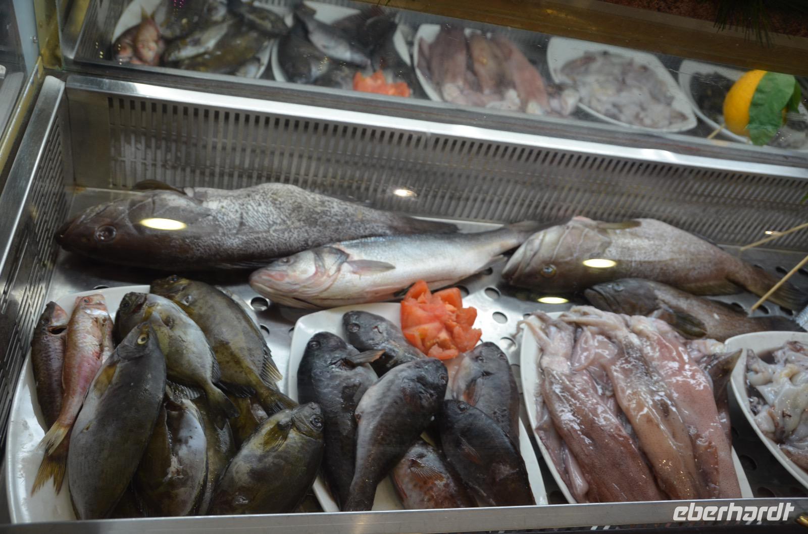 Mit dem Bus ging es weiter nach Limassol. Vorher legten wir noch einen kleinen Zwischenstopp an einer Erdbeerplantage ein, um die leckeren Früchte zu probieren. In der Stadt angekommen, liefen wir vorbei an der Burg aus dem 12. Jahrhundert, wo sich damals die Kirche befand, in der Richard Löwenherz geheiratet hat. Wir gingen auf der Straße mit Blick auf das Minarett bis zu dem Fischrestaurant. Hier bekamen wir ein vorzügliches Fisch-Meze-Essen mit z.B. Muscheln, Calamares und Dorade serviert. Nach dem Mittag überreichten wir Antonis unser Dankeschön für die gelungene Reise.