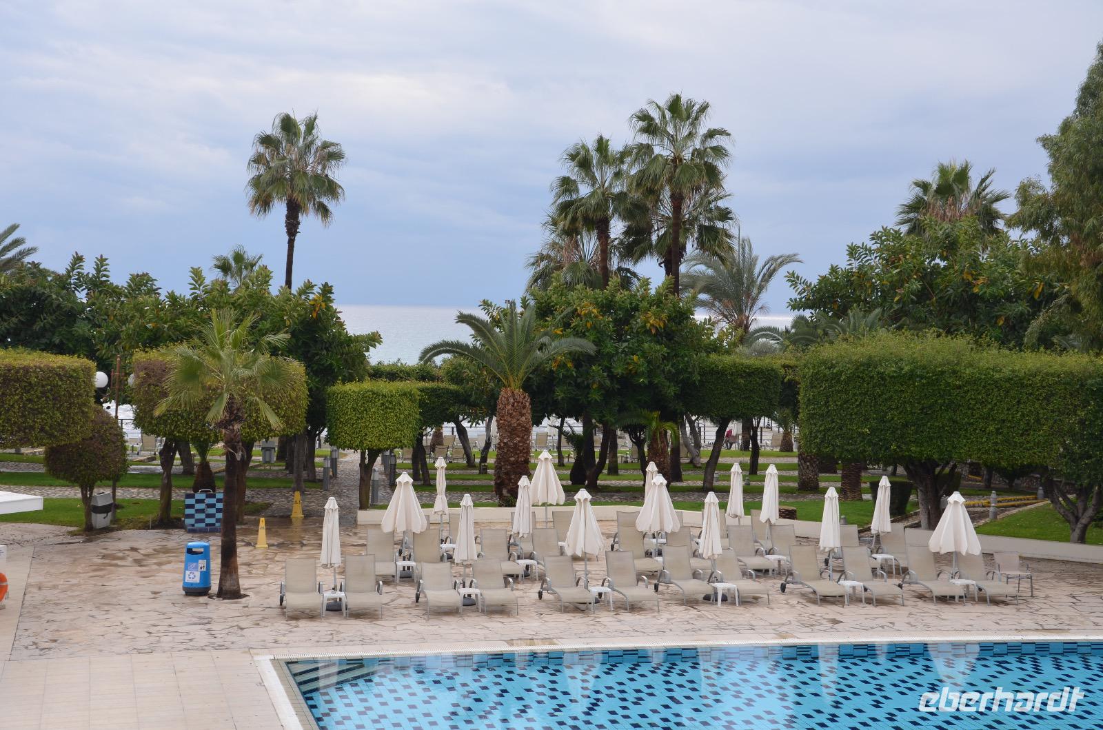 Am Morgen des 2. Weihnachtsfeiertages erreichten wir Zypern bei strahlendem Sonnenschein. Auf unserer Fahrt von Paphos nach Limassol zu unserem Strandhotel, hatten wir den ständigen Blick auf das blau glitzernde Meer. Wir kamen vorbei an einigen Gewächshäusern für Erdbeeren, Zitrusplantagen und blühenden Hibiskussträuchern. Somit erhielten wir einen ersten Eindruck von der drittgrößten Insel im Mittelmeer. Im Hotel angekommen, erwartete uns ein reichhaltiges Frühstücksbuffet und wir konnten uns nach der zeitigen Anreise stärken und die Gruppe langsam kennenlernen.