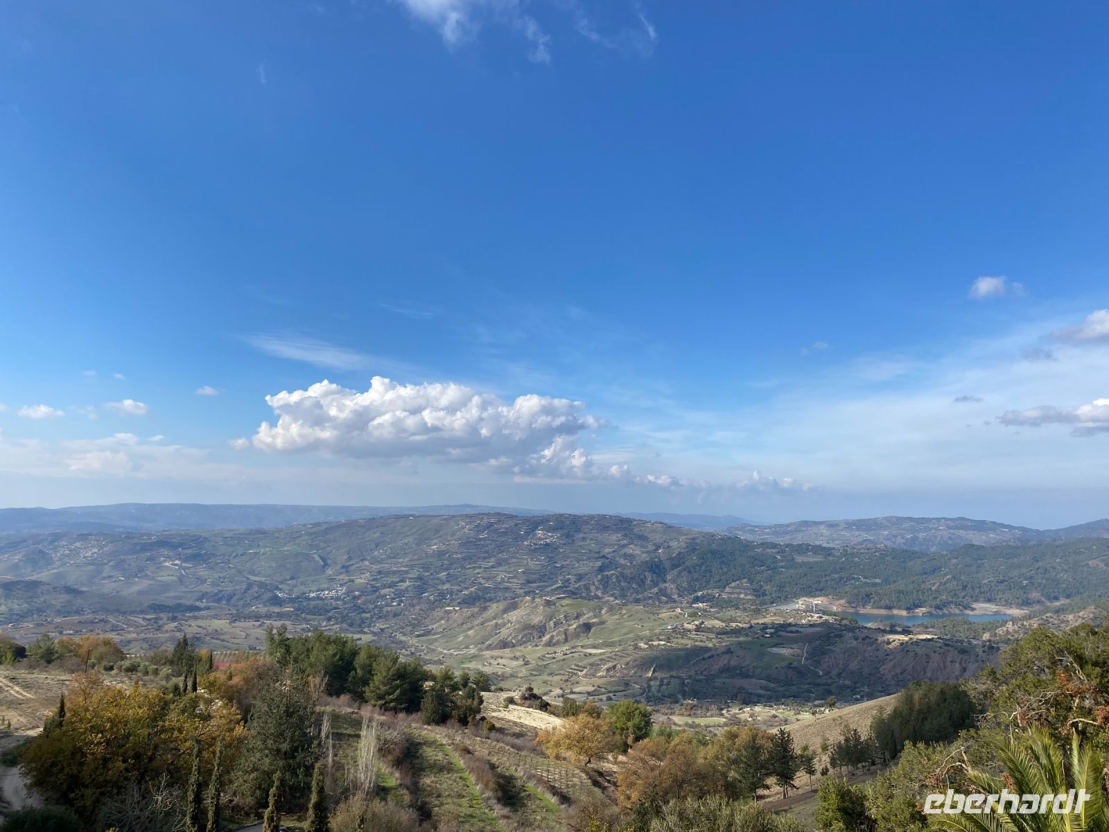 Nach einem ersten fantastischen Abendessen ließ sich auch das Frühstück nicht lumpen. Wir stärken uns für unseren ersten, sonnigen Tag auf der Insel Zypern. Gemeinsam mit unserem Reiseleiter fuhren wir in die Bergwelt Zyperns. Antonis erklärte uns erste Dinge über die Geografie der Insel und schmückte sein Wissen immer wieder mit persönlichen Geschichten. Angekommen im Bergdorf Pano Panagia erwartete uns ein wundervoller Ausblick über die umliegende Landschaft. Auf dem Weg ins Hinterland konnten wir unzählige Weinberge, Mandarinen- und Granatapfelbäume bestaunen. Nachdem wir die frühlingshaften Temperaturen und das Vogelzwitschern kurz genießen durften, starteten wir mit einer Besichtigung eines kleinen und familiengeführten Weingutes. Wir liefen durch verschiedenste Stationen und bestaunten die unterschiedlichen Weinsorten, die hier seit Generationen produziert werden. Eine Verkostung durfte am Ende des Tages natürlich nicht fehlen. Wir probierten uns durch Weiß-, Rot-, und Roséweine und ließen uns die verschiedenen Aromen schmecken. Nach diesem Besuch führte uns unsere Reiseroute nur wenige Minuten weiter zum Haus des erste Präsidenten des Landes, Makarios. Das Geburtshaus wurde als Museum umgestaltet und wir erfuhren ein paar Informationen über Makarios engste Freunde, wie J.F. Kennedy, oder die Lebensweise während seiner Jahre als Politiker. Wir spazierten durch das kleine Dorf zurück zu unserem Reisebus und fuhren weiter zum Kloster Chrysorrogiatissa. Da das Kloster aktuell für die Öffentlichkeit geschlossen ist und wir eine Sondergenehmigung für den Besuch hatten, hatten wir besonders viel Zeit und Ruhe um den Innenhof, das Gotteshaus und die Sonnenterrasse zu entdecken. Wir bestaunten die Malereien der Kirche und Antonis erzählte uns von seinen Erlebnissen mit den Mönchen des Klosters. Mit vielen Informationen im Gepäck fuhr uns unser Buschauffeur zu unserer Taverne zum Mittagessen. Herzlich wurden wir empfangen und verspeisten typisch zyprische Gerichte, wie einen Salat mit Feta, Moussaka und einen Orangenkuchen. Unser erster erlebnisreicher Tag endete mit für alle individuell in der Sonne. Nach Ankunft in unserem Hotel erkundeten wir den Strand, ließen uns einen Kaffee in der Sonne schmecken oder verbrachten die Zeit im Schwimmbad. Zu einem gemeinsamen Abendessen trafen wir uns am Abend mit Hotelrestaurant und freuten uns auf einen bevorstehenden Tag in der geteilten und vielseitigen Hauptstadt Zyperns. Es geht nach Nakosia.