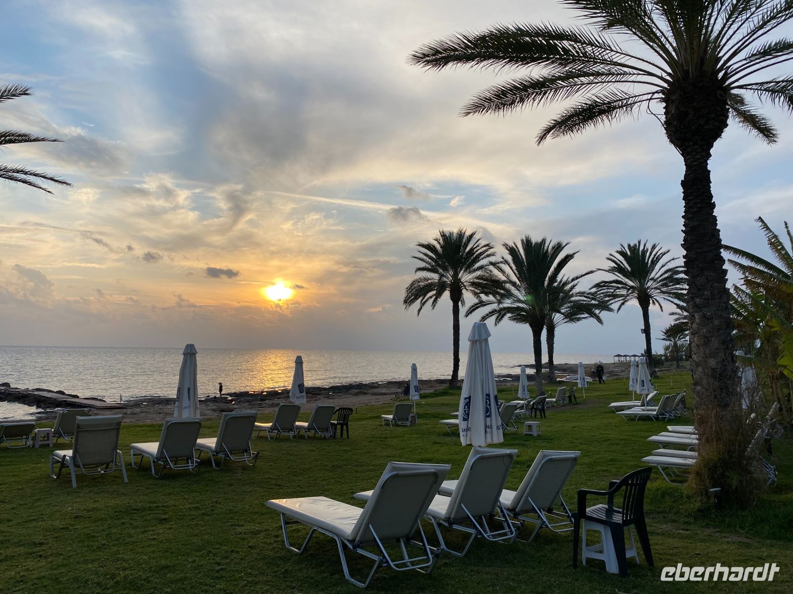 Der Tag begann für die meisten von uns früh. So reisten wir aus unseren Heimatregionen individuell oder gemeinsam auf die Sonneninsel Zypern, nach Larnaca. Der Großteil von uns erreichte unser Ziel am frühen Abend. Am Flughafen wurden wir bereits von unserem herzlichen Reiseleiter Antonis oder von freundlichen Transferfahrer in Empfang genommen. Während einer Fahrt ins Hotel konnten wir uns von der Anreise ein wenig erholen und bezogen anschließend unsere Zimmer. Bei einem ersten gemeinsamen Abendessen lernten wir uns gegenseitig kennen und stießen auf unseren ersten Abend auf Zypern an. Das großzügige Buffet des Hotels ließ keinen kulinarischen Wunsch offen und so fielen wir alle nach einem langen Reisetag in unsere Betten und schliefen mit Meeresrauschen ein.