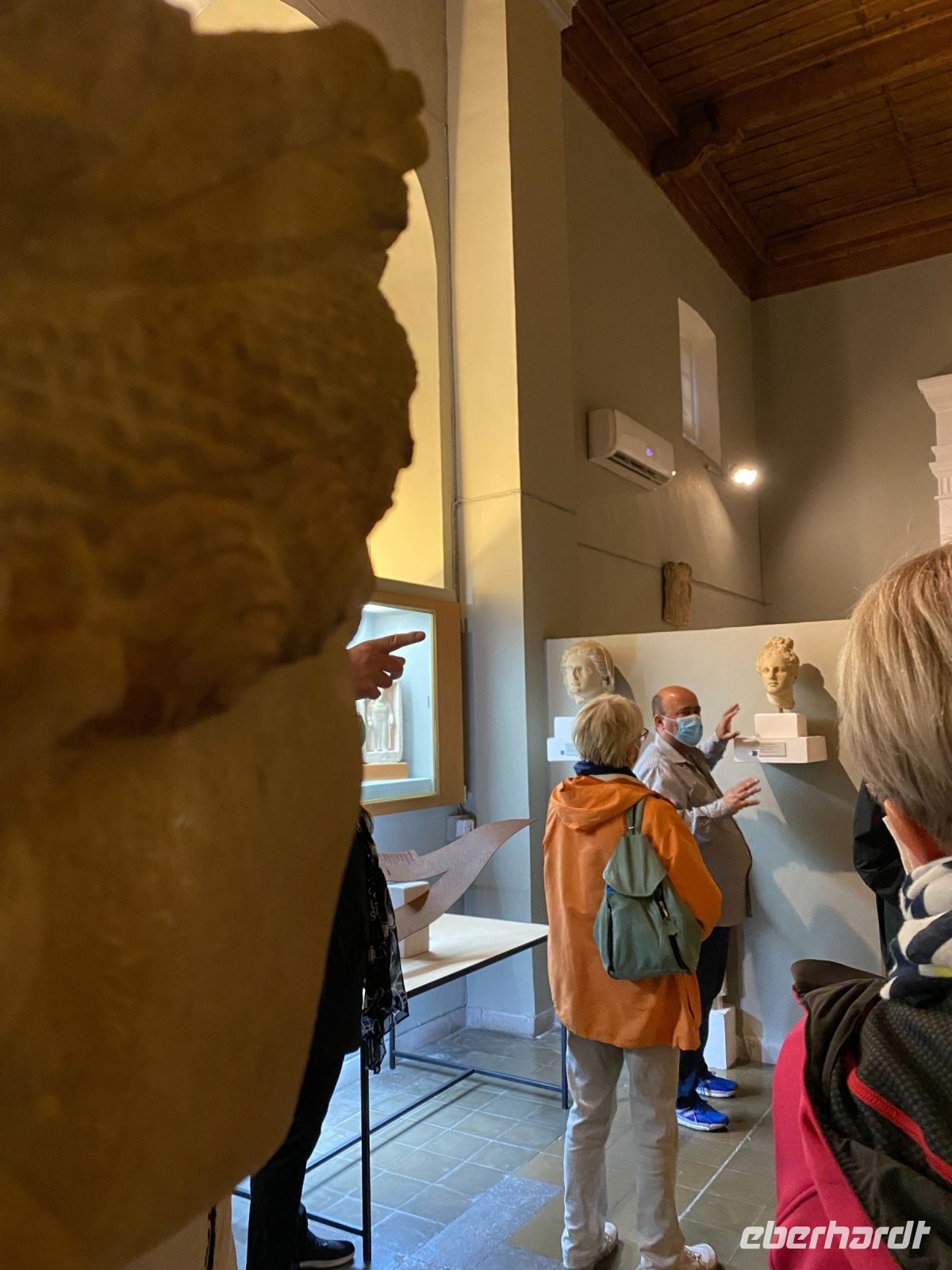 Nichtsdestotrotz starteten wir am Morgen für unseren Tagesausflug in die geteilte Hauptstadt Nikosia. Unser Reiseleiter Antonis versorgte uns auf der circa zwei Stunden dauernden Fahrt mit vielen Informationen über die Geschichte und Politik der Insel. Da sich der Wetterbericht für den Tag nicht besserte, legten wir eine kleinen Regenpause auf unserer Fahrt ein. Wir besuchten eine kleine Olivenpresse und wurden Zeugen, wie die Oliven von der Frucht in delikates Olivenöl verwandelt werden. Nach einer kleinen Kostprobe wurden also auch die ersten Mitbringsel eingepackt und wir machten uns weiter auf in Richtung Norden. In Nikosia angekommen besuchten wir zunächst einen traditionellen Handwerksmarkt. Wobei es eher eine große Werkstatt mit unterschiedlichen Räumen gut beschreibt. Verschiedenste traditionelle Handwerke werden hier am Leben gehalten, praktiziert und unterrichtet. Mit viel Passion zeigten uns die Frauen zum Beispiel, wie aus alten Textilresten Teppiche hergestellt werden, oder wie feinste Keramik mit traditionellen Mustern bemalt wird. Wir reisten somit ein wenig durch die handwerkliche Geschichte des Landes. Im Anschluss mussten wir unseren geplanten Stadtrundgang aufgrund des anhaltenden Dauerregens durch eine Fahrt ersetzen und besuchten zunächst einmal die geplanten Kirchen und Museen. Die Agios-Giannes-Kathedrale beeindruckte uns mit der detailreichen Gestaltung und unser Reiseleiter war, wie gewohnt, ein wandelndes Lexikon und füllte die Mauern mit Geschichten, Fakten und Bildern. Auch der folgende Programmpunkt sollte uns dank Antonis mit viel Informationen versorgen. Wir besuchen das Archäologische Museum mit seinen unzähligen Ausgrabungen. Auch hier wartete wieder eine kleine Reise durch die Zeit auf uns. Aus verschiedensten Epochen wurden hier Fundstücke ausgestellt. Wir waren begeistert und überwältigt, wie viel hier in der Region gefunden und erhalten werden konnte. Auch die geplante Mittagpause in der Altstadt mussten wir leider verschieben. So fuhren wir spontan raus aus dem Gewittergebiet über Nikosia und besuchten die Hafenstadt Limassol für einen kleinen Stadtbummel. Ob kaffeetrinkend am Hafen oder während einer kleinen Mahlzeit, wir beobachteten die tosenden Wellen, die sich an den Hafenmauern brachen. Zurück im Hotel wartete nur noch ein, wie gewohnt reichhaltiges, Abendessen auf uns.