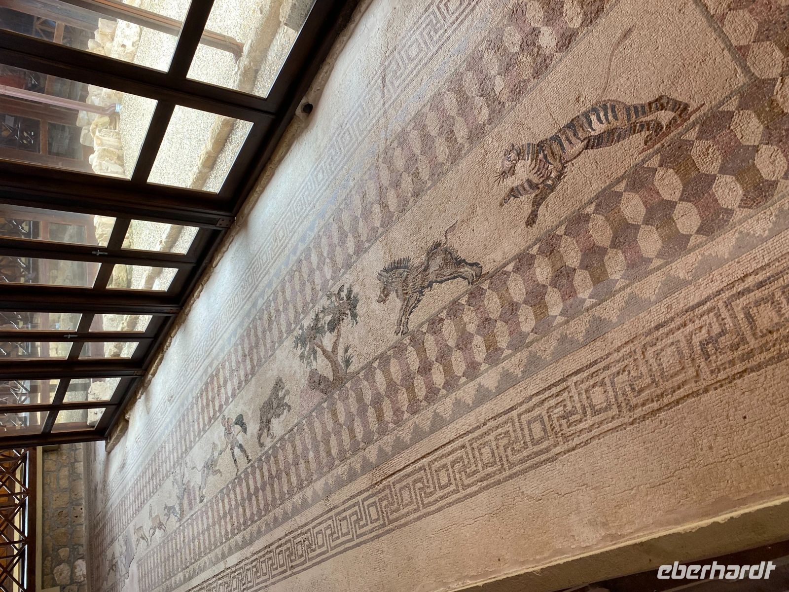 Unser erster Halt sollte das Felsenkloster des Heiligen Neophytos sein. Wir fuhren von Paphos aus in das Hinterland der Insel und erreichten nach circa einer halben Stunde das in den Felsen gebaute Kloster. Die gesamte Klosteranlage begeisterte uns mit der in der Architektur versteckten Liebe zum Detail, mit der interessanten Geschichte und den Erzählungen unseres Reiseleiters. Besonders die Malereien in der kleinen Felsenkapelle waren einzigartig. Was uns aber außerdem noch begeisterte war ein Wasserfall vor dem Eingang zur Kapelle. Selbst Antonis machte hier Fotos und erzählte uns, er habe den Wasserfall in den vergangenen 10 Jahren nicht mehr so voll gesehen. Nach einem Besuch des Kirchgebäudes beschlossen wir, die eigentlich heute geplanten Königsgräber aufgrund des Wetters nicht mehr zu besuchen. Wir verschoben diesen Programmpunkt auf einen anderen Tag und setzten unsere Reise weiter fort nach Paphos. In Paphos besichtigten wir kurz eine alte Basilika, bevor wir den Bodenmosaiken und dem Haus des Dyonysos einen Besuch abstatteten. Die detaillierten Mosaike schmückten hier wahrscheinlich ein ehemaliges Gästehaus und Antonis füllte die Steine durch seine Erzählungen und Erklärungen mit Leben. Diese Sehenswürdigkeit von Paphos ist eindeutig einen Besuch wert. Als wir die Überdachten Mosaike für einen kurzen Spaziergang verließen war dann auch endlich die Sonne hinter den Regenwolken hervorgekommen und zauberte uns allen ein breites Lächeln in die Gesichter. Wir spazierten also noch kurz über das weitläufige Gelände und fuhren dann weiter zu unser heutigen Taverne zum Mittagessen. Wie auch in den vergangenen Tagen warteten hier typisch zypriotische Speisen auf uns. Heute standen Sheftalia und Suflakia auf dem Programm. Gut gesättigt machten wir uns nach einer gemütlichen Mittagspause auf den Weg zurück zum Hotel. Vor dem heutigen Silvesterdiner hatte nun jeder noch ein wenig individuelle Zeit, um sich zurechtzumachen, den Friseur zu besuchen oder einen Spaziergang am Meer zu genießen. Wir trafen uns alle beim festlichen Galadinner im Restaurant wieder und verbachten einen geselligen Abend zusammen. Eine Stunde vor Deutschland starteten wir am Poolbereich mit einem Glas Sekt und einem Wunschluftballon in das neue Jahr 2022.