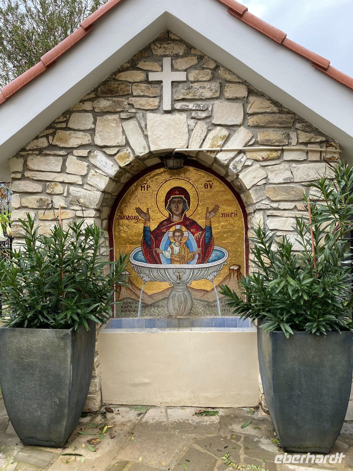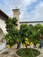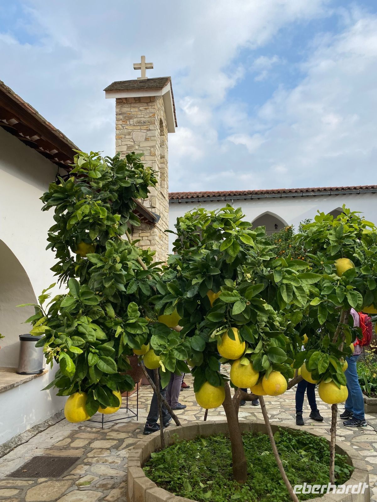 Nach einem kurzen Regenschauer machten wir uns von diesem herzlichen Ort auf zum nahegelegenen Frauenkloster Agios Minas im Hinterland Zyperns. Wir besichtigten die Klosteranlage und die kleine Kapelle und freuten uns über die verschiedenen Obstbäume, die wir im Innenhof des Klosters bestaunen durften.