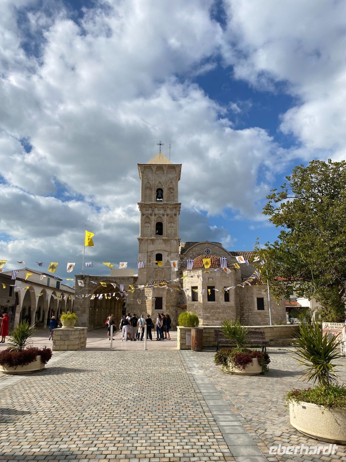 Nach einer letzten Nacht am Meer wurden am Morgen die letzten Koffer gepackt und wir fuhren nach einem letzten gemeinsamen Frühstück in Richtung Flughafen Larnaka. Unseren Reiseleiter Antonis sammelten wir ein letztes Mal in Limassol ein und die Sonne begleitet uns bis zum Flughafen. Nachdem wir uns von unsren Gästen nach Düsseldorf verabschiedet haben, fuhren wir gemeinsam noch einmal an den Salzsee nahe des Flughafens, zählten Flamingos und besuchten die schön gelegenen Moschee direkt am See. Im Anschluss erkundeten wir noch die Altstadt Larnakas und die dort errichtete Lazarus-Kirche sowie die Hafenpromenade. Am frühen Nachmittag ging es dann für alle Gäste zum Flughafen zurück. Wir checkten für unseren Rückflüge ein und machten uns mit viel Sonne, schönen Erinnerungen und dem ein oder anderen Souvenir auf den Weg zurück nach Deutschland.