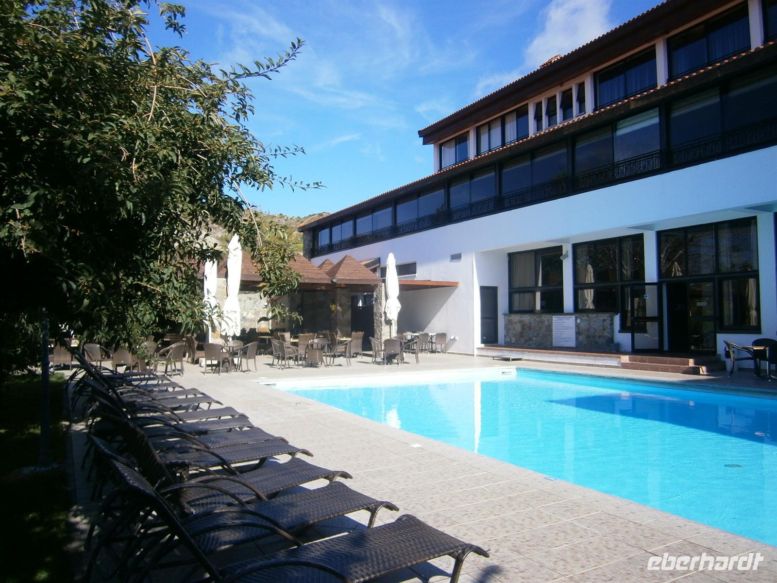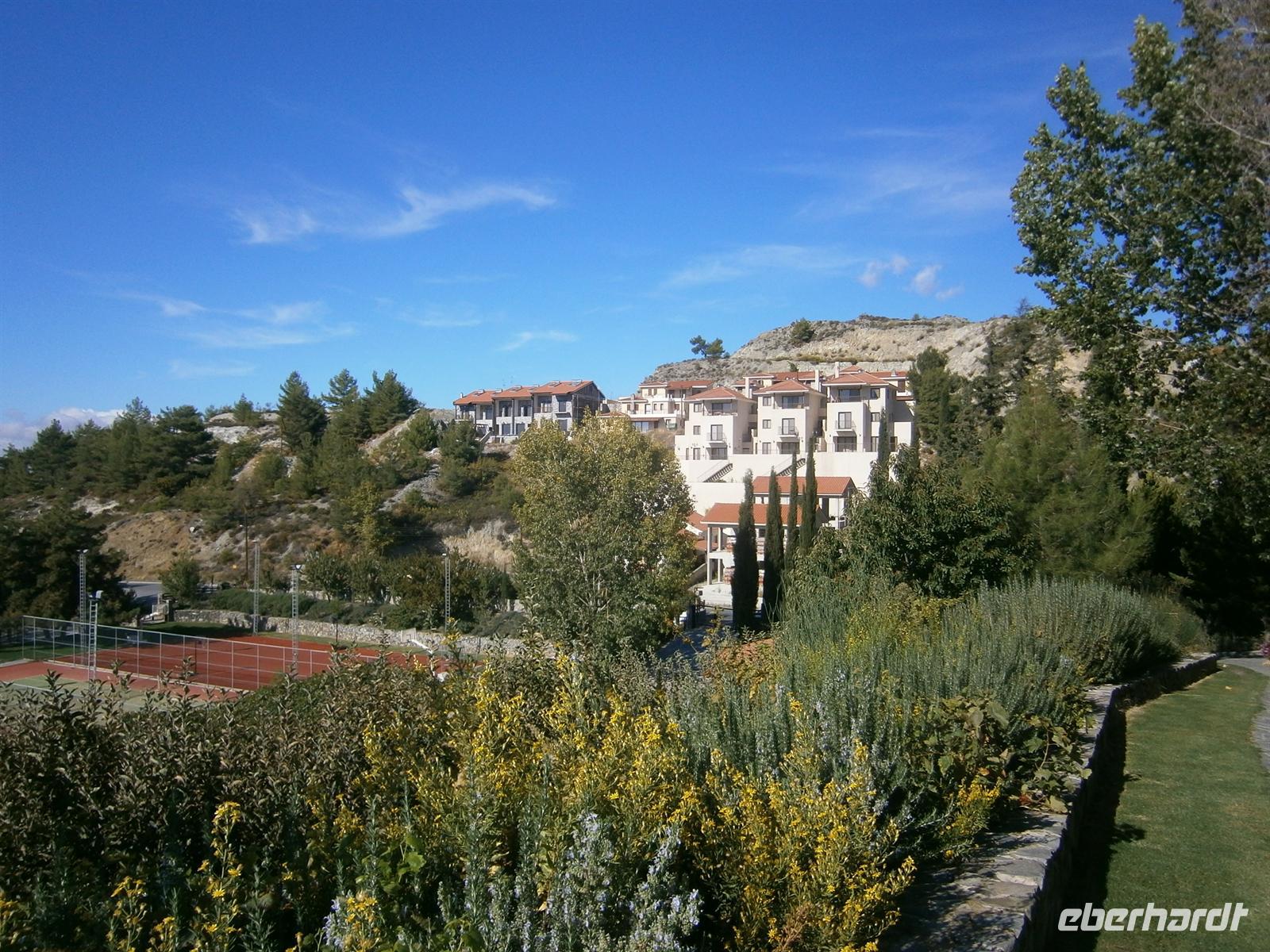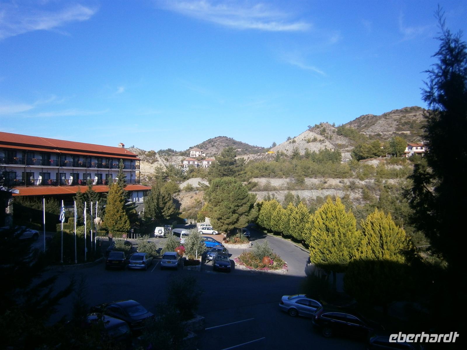 Noch schnell einen prüfenden Blick ob auch nichts vergessen wurde und los geht´s in Richtung Flughafen. Nachdem alle Reiseteilnehmer gut zum Flughafen gebracht wurden bzw. selbst anreisten, flogen wir über Frankfurt ins zypriotische Larnaca. Es war schon spät bzw. sehr früh, als uns Antonios morgens um 2.15 Uhr freudig in Emfpang nahm. Aber wir hatten noch eine kleine Reise vor uns, denn unser Hotel, was auf 1000m in Agros im Trodosgebirge lag, war vom Flughafen eine gute anderthalb Stunde entfernt. Antonio hielt seine Begrüßung daher sehr kurz, da alle sehr müde von der Anreise und natürlich der Tageszeit waren. Aber dass wir keine Eierschecke und keine Leberwurst mithatten, enttäuschte ihn schon ein wenig.
