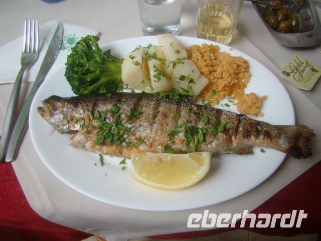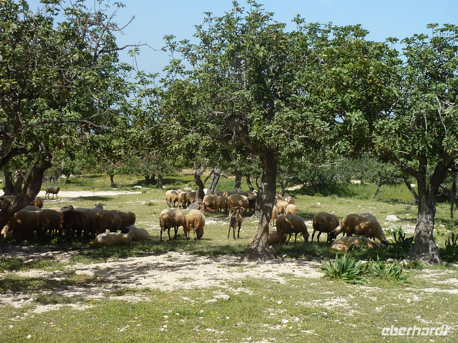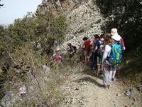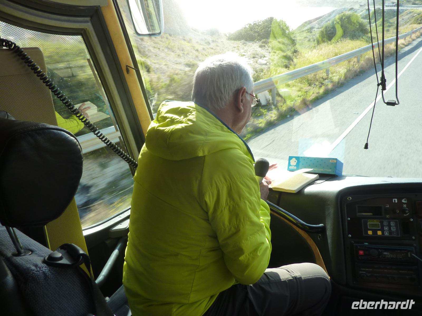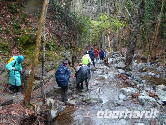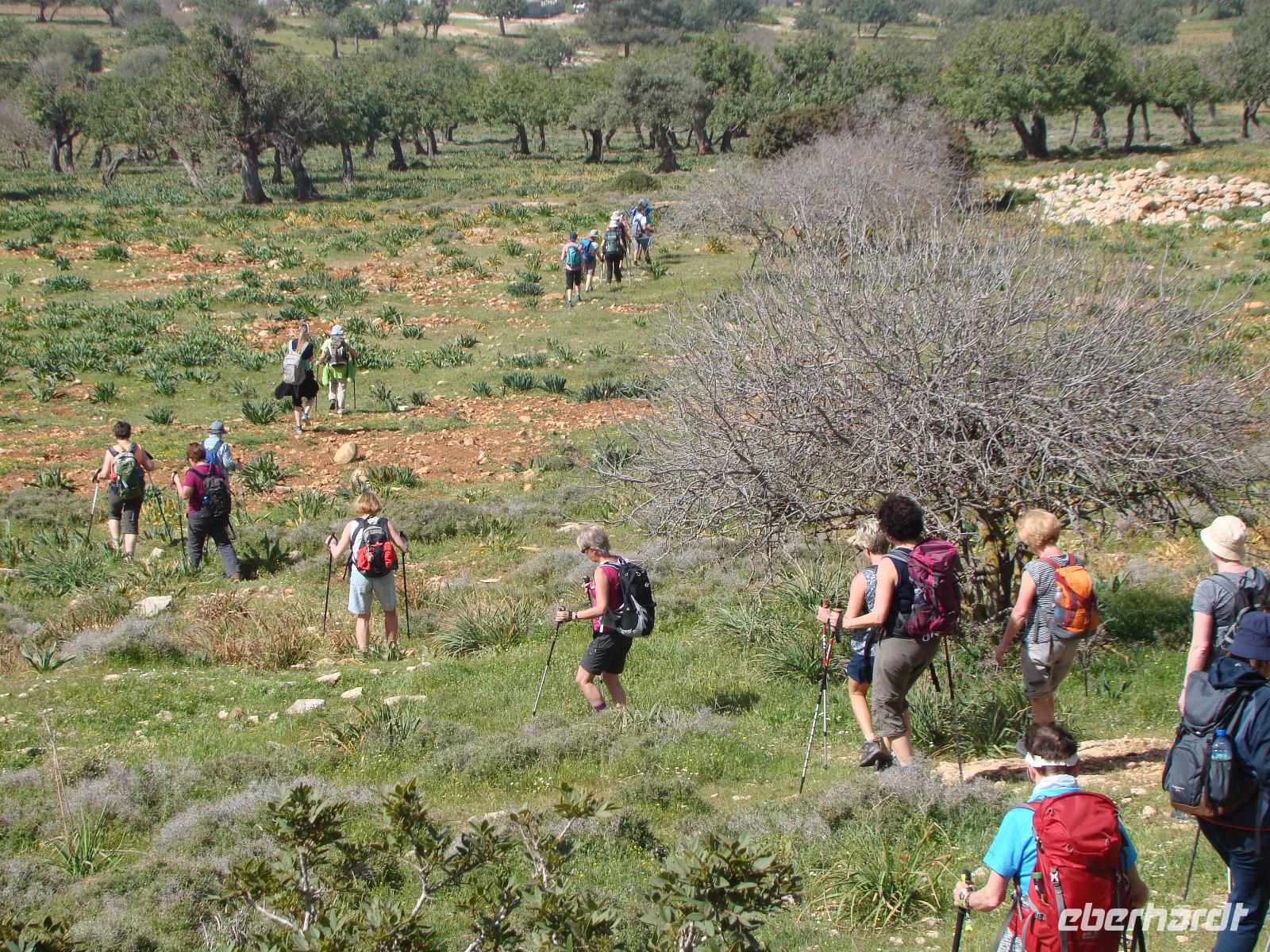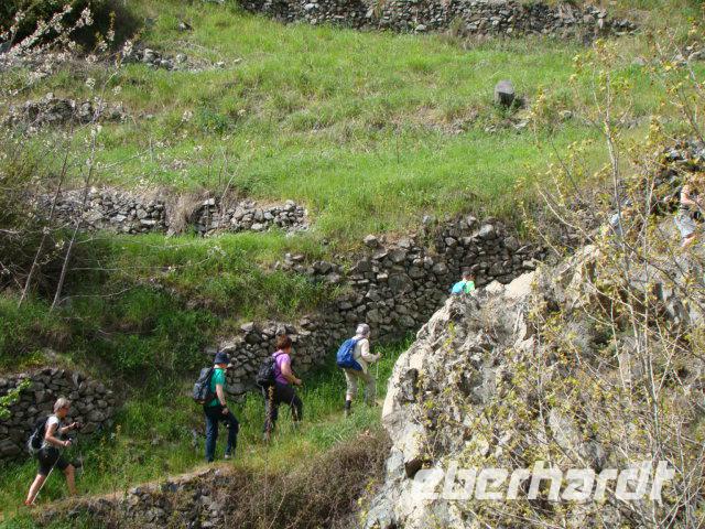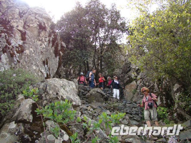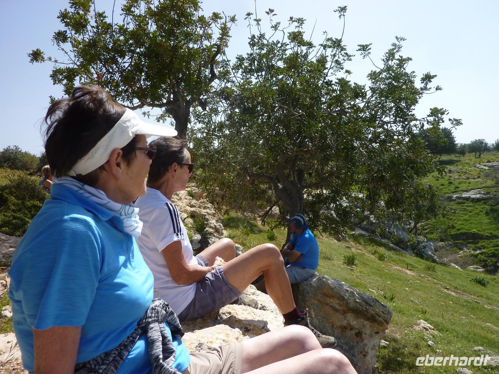 Nach dem Frühstück starteten wir unsere erste Wanderung direkt vom Hotel. Vorbei am Sanatorium nahmen wir einen ersten seichten Anstieg und schon bald konnten wir uns an herrlichen Ausblicken erfreuen, die nur leicht getrübt wurden durch den Saharasand, den der Wind bis nach Zypern mit sich führte. Aber mit etwas Phantasie konnte man sogar die Gebirgszüge der Türkei ausmachen, manch einer glaubte sogar schneebedeckte Berge zu erkennen. Wir wanderten weiter einen Höhenweg entlang und erreichten einen kleinen Rastplatz unterhalb des Gipfels mit der Feuerwache. Einige Gäste ruhten, andere erklommen den Gipfel und genossen so nochmals einen schönen Rundumblick ins Trodosgebirge. Von hier aus ging es mehr oder weniger immer leicht bergab, erste Frühblüher säumten den Wegesrand. Am Ziel unserer Wanderung erwartete uns ein rot-schwarzer Oldtimer Bus, welch eine Überraschung. Natürlich war dies ein ideales Motiv für ein Gruppenfoto .. gesagt getan. Mit dem urigen "Geschoss" fuhren wir schließlich nach Agros und kehrten dort zu einer Meze in Nikos Taverne ein. Kaum zu glauben, was hier alles aufgetischt wurde .. Tzaziki, Brot, Oliven, Weinblätter, Salate und Unmengen an Fleisch, und eines immer leckerer als das andere. Selbst die Vegatrier kamen hier auf ihre Kosten. Danach wartete eine weitere Überraschung auf uns. Wir statteten Nikis-Süßigkeitenfabrik einen Besuch ab. Allerlei Leckerein zum Probieren und schließlich auch für den Erwerb. Danach brachte uns der Oldtimer zurück ins Hotel. Und auch das Abendessen war wieder sehr gut, nur hatten wir noch garnicht wieder so richtig Appetit nach der opulenten Mittags-Meze.