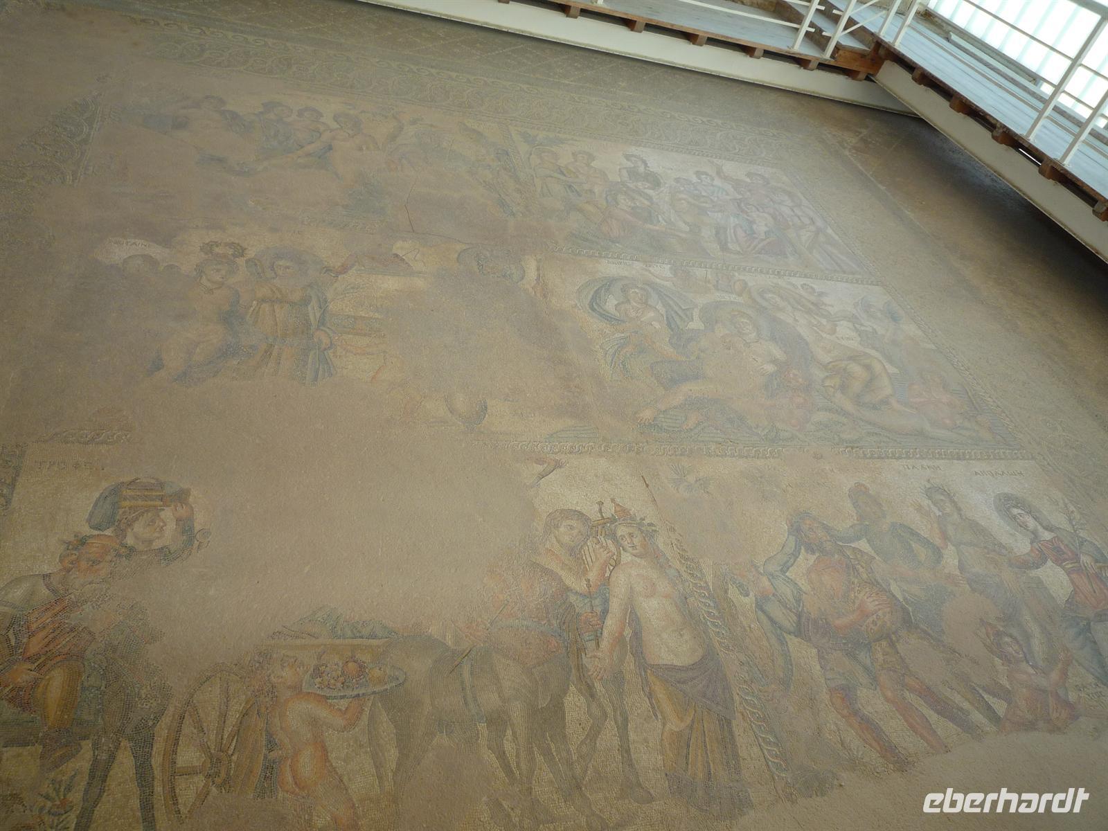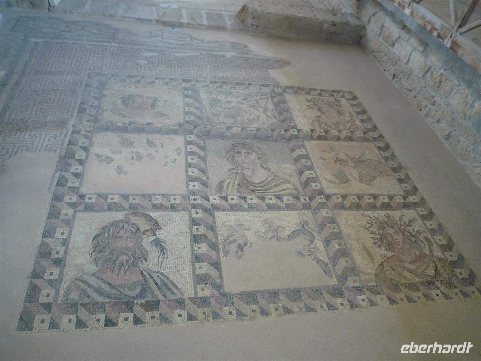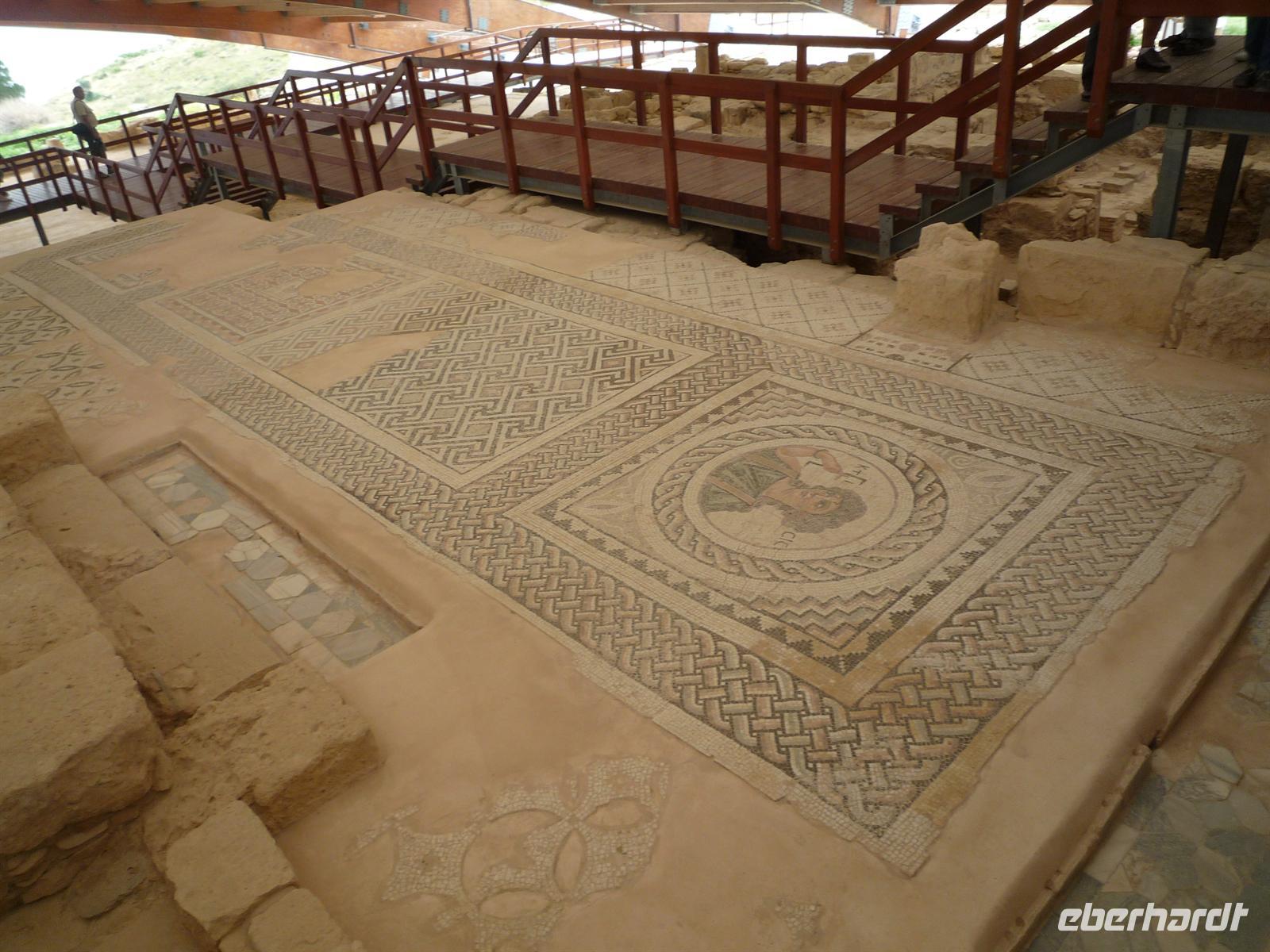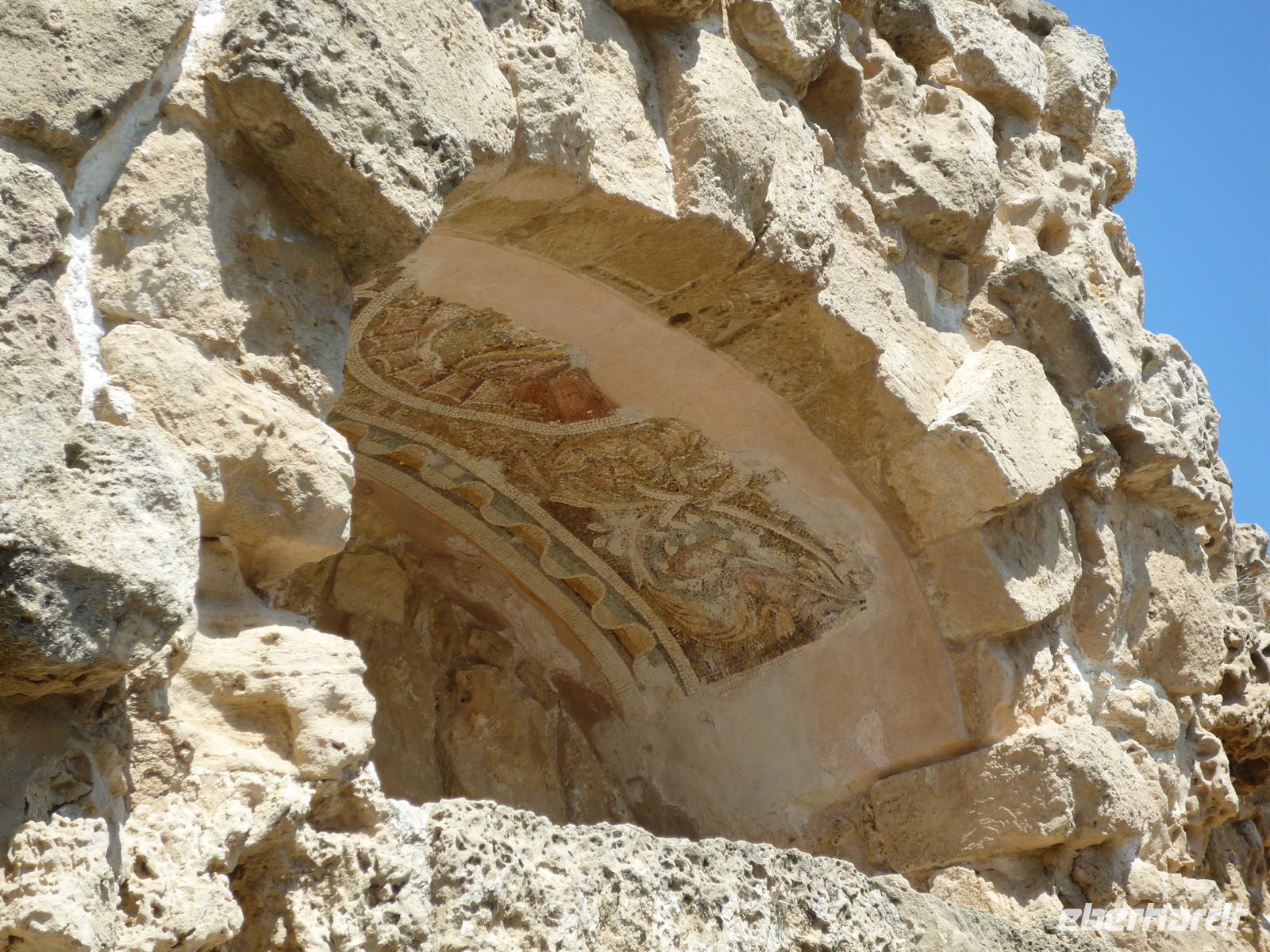 Heute verbringen wir die meiste und eine überaus anregende Zeit im Archäologischen Park direkt am Hafen von Paphos mit der Besichtigung der dort freigelegten Mosaike. Antonis versteht es wieder perfekt, uns anhand der bildlichen Darstellungen in die Griechische Mythologie zu entführen und mit der vorchristlichen bildenden Kunst vertraut zu machen.