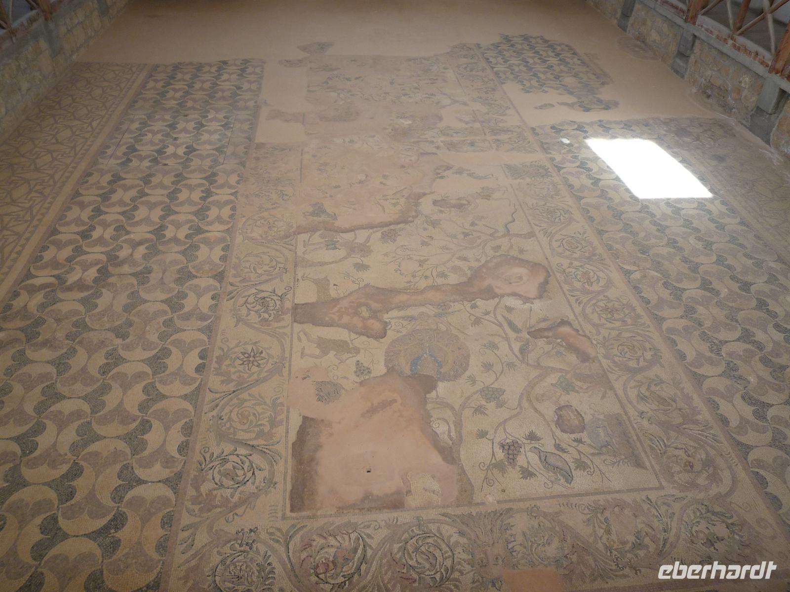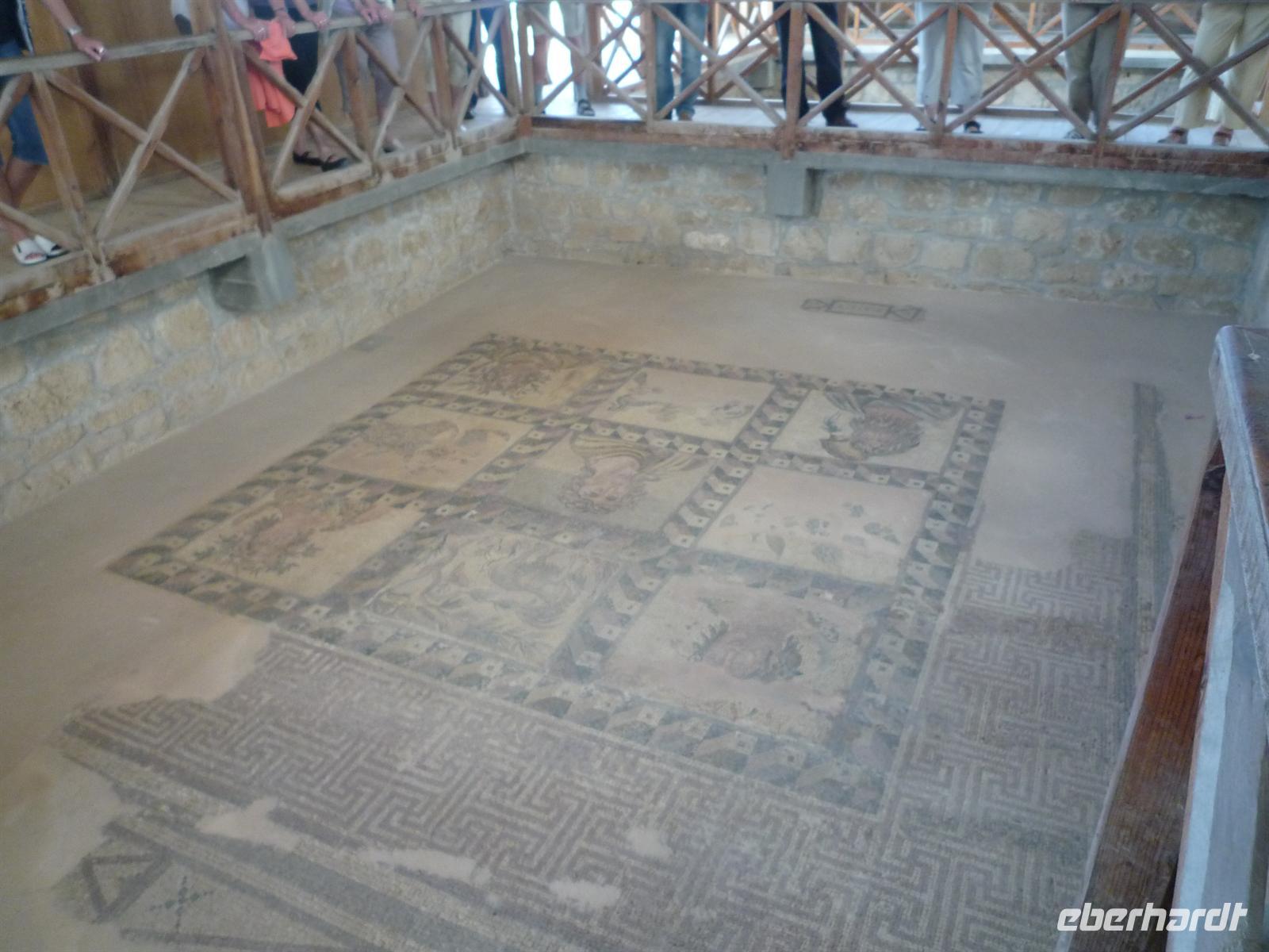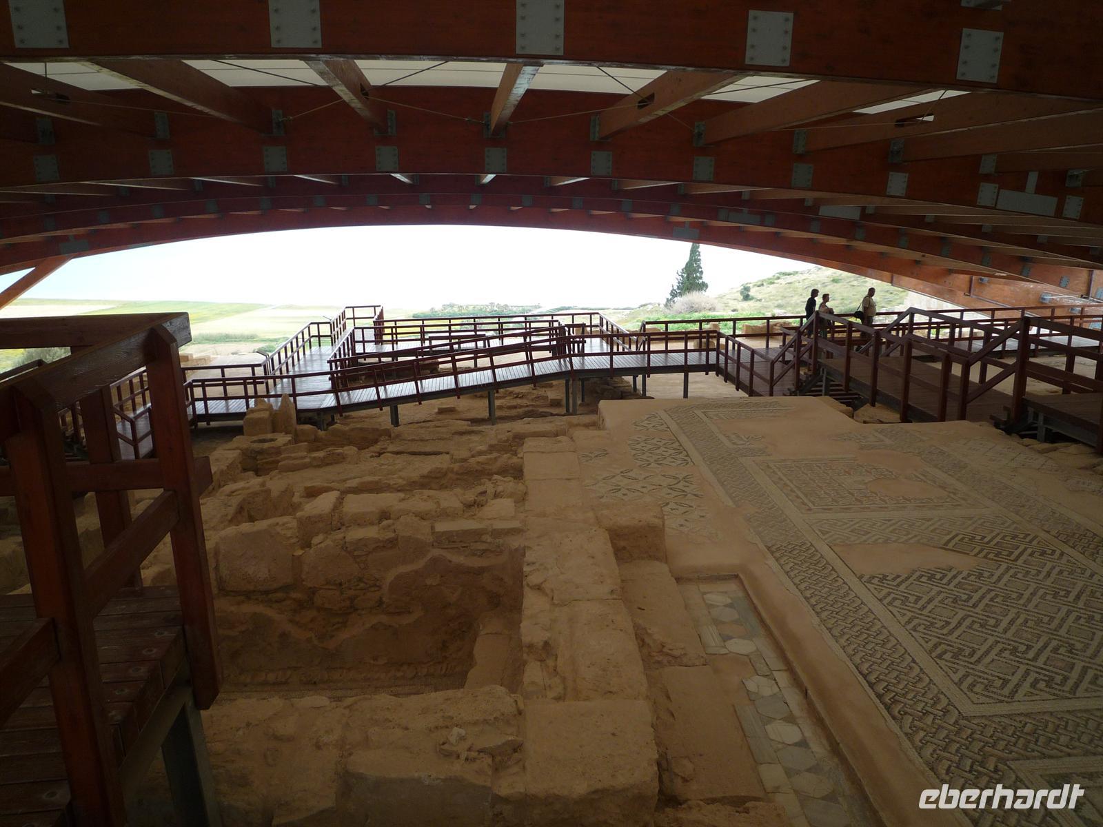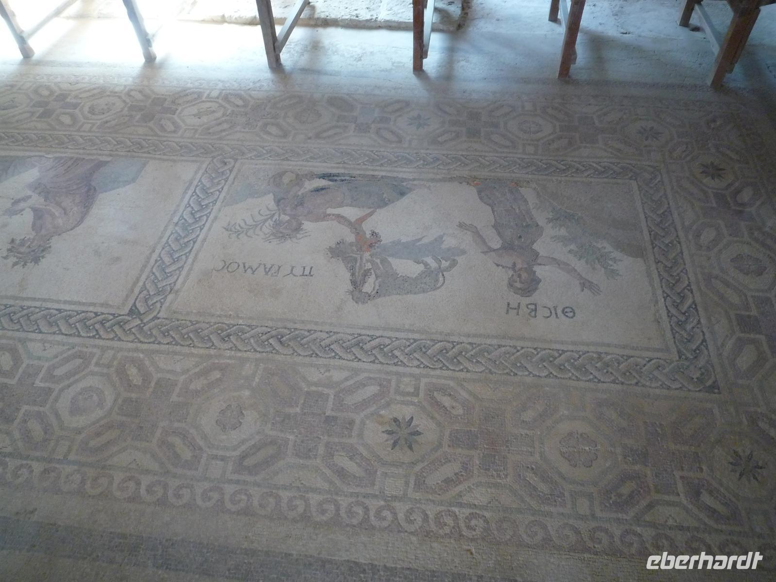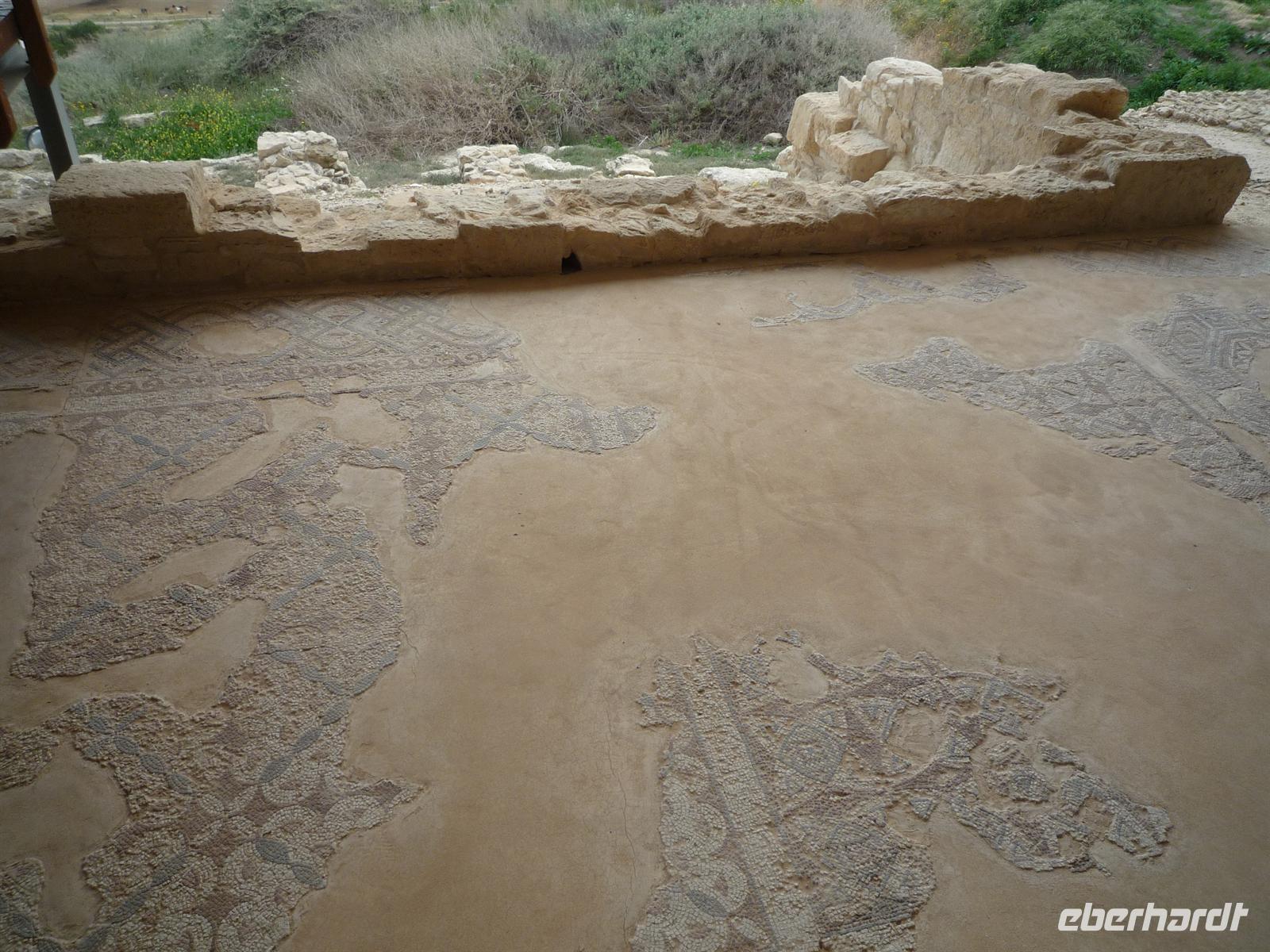 Heute verbringen wir die meiste und eine überaus anregende Zeit im Archäologischen Park direkt am Hafen von Paphos mit der Besichtigung der dort freigelegten Mosaike. Antonis versteht es wieder perfekt, uns anhand der bildlichen Darstellungen in die Griechische Mythologie zu entführen und mit der vorchristlichen bildenden Kunst vertraut zu machen.
