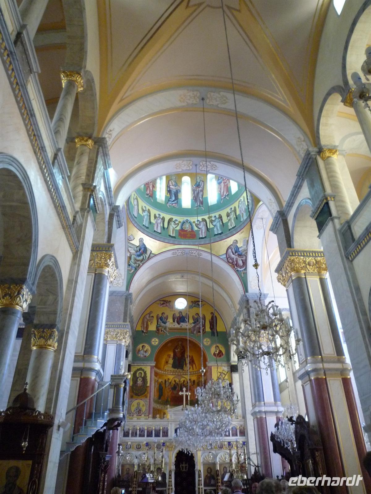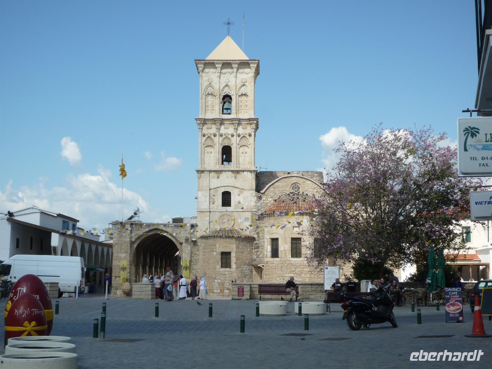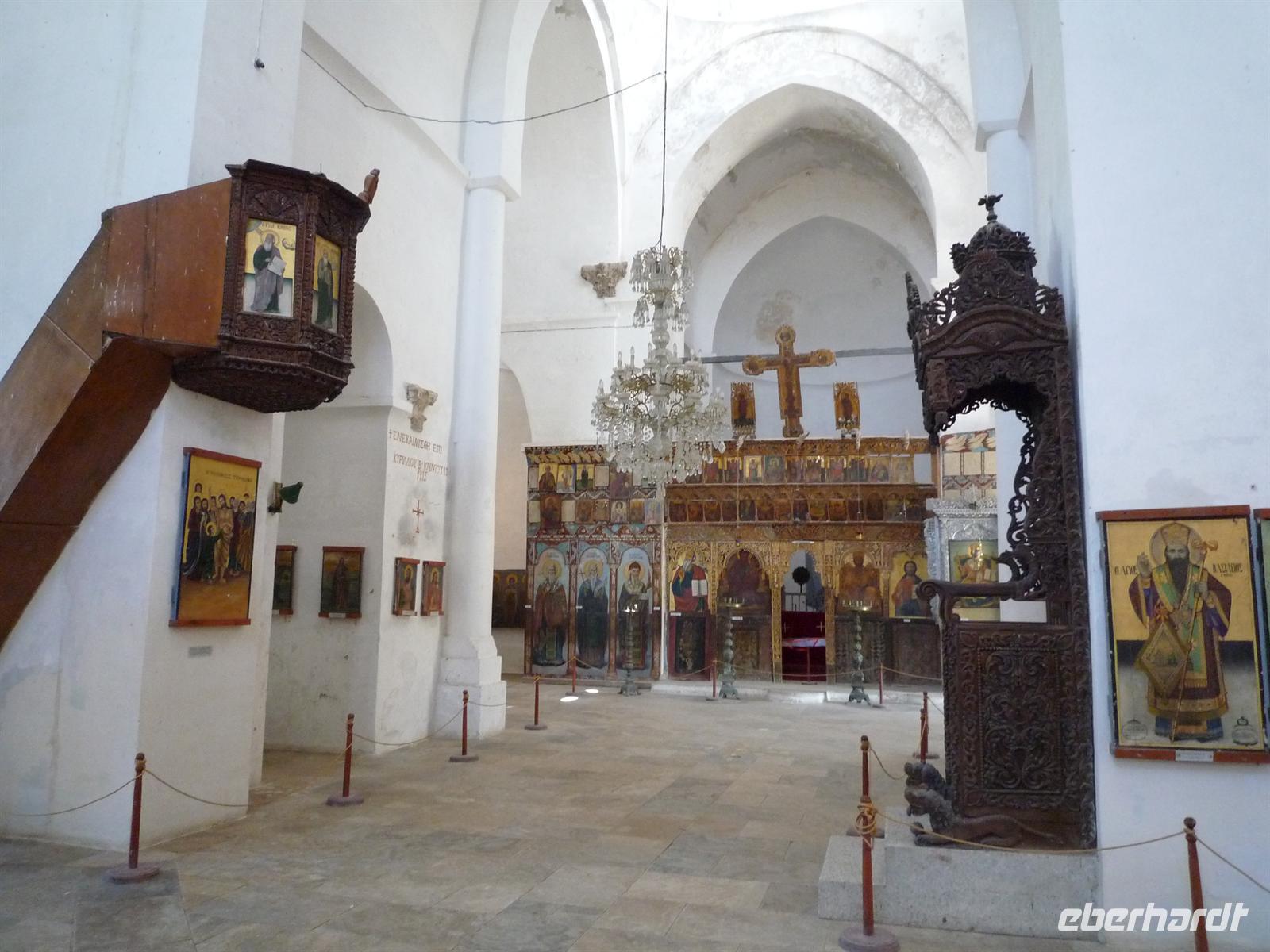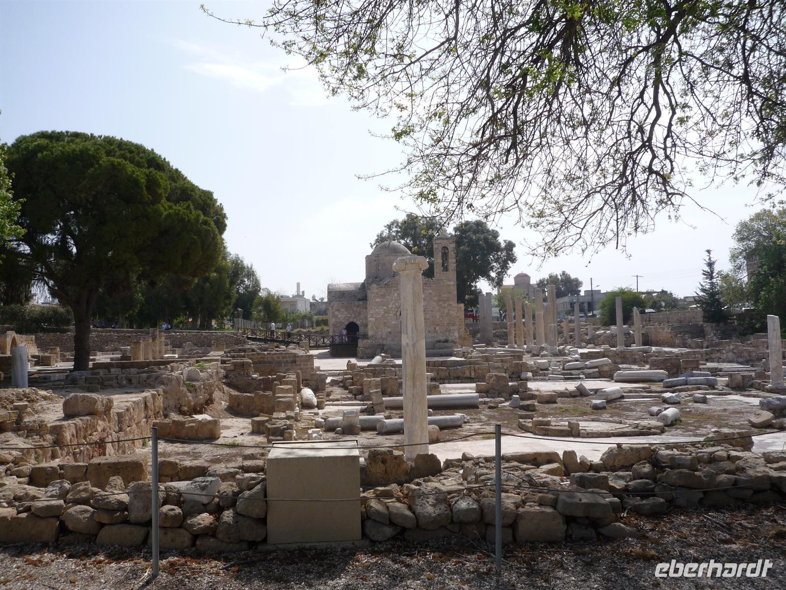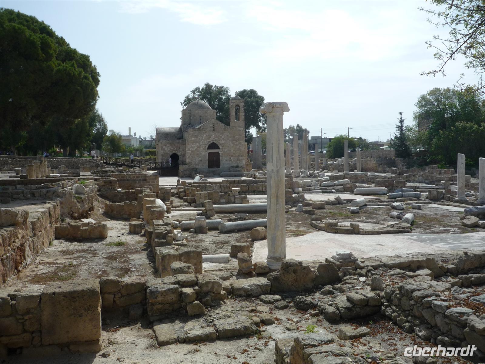 Wir sehen dann die Ausgrabungen des Geländes mit der Säule des Apostels Paulus, der angeblich an diesem Ort 45 n.Chr. für die Missionierung christlichen Glaubens „40 minus 1“ Peitschenhiebe erhalten haben soll. Die dort heute aktive Kirche Agia Kyriaki können wir nicht betreten, weil heute am Sonntag eine Messe stattfindet.