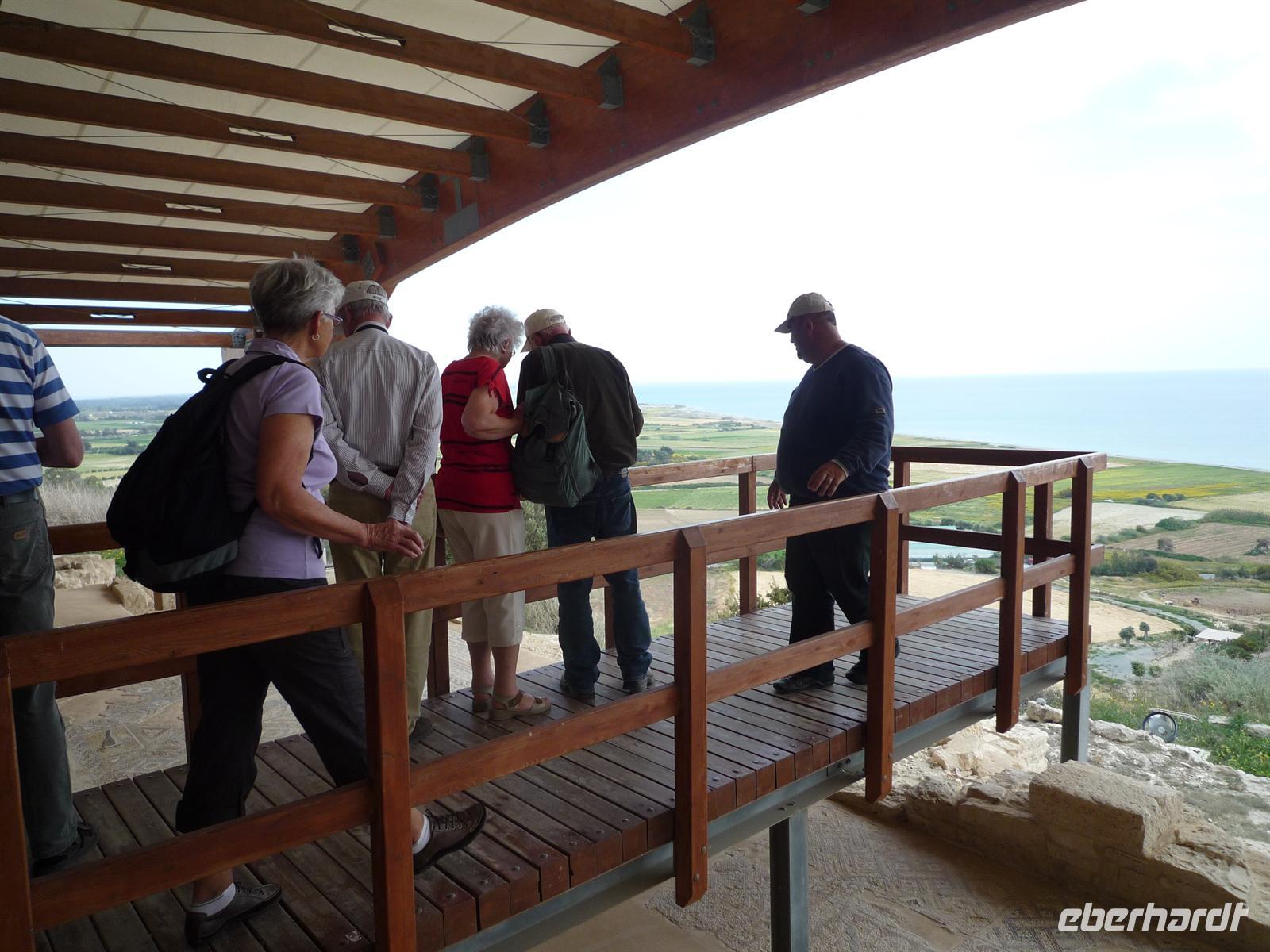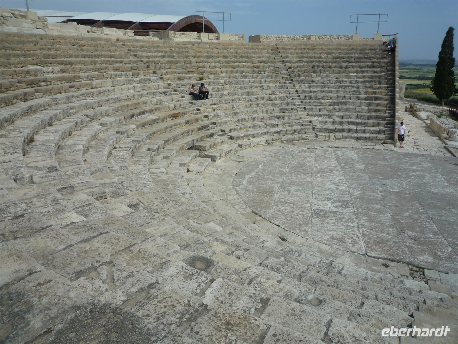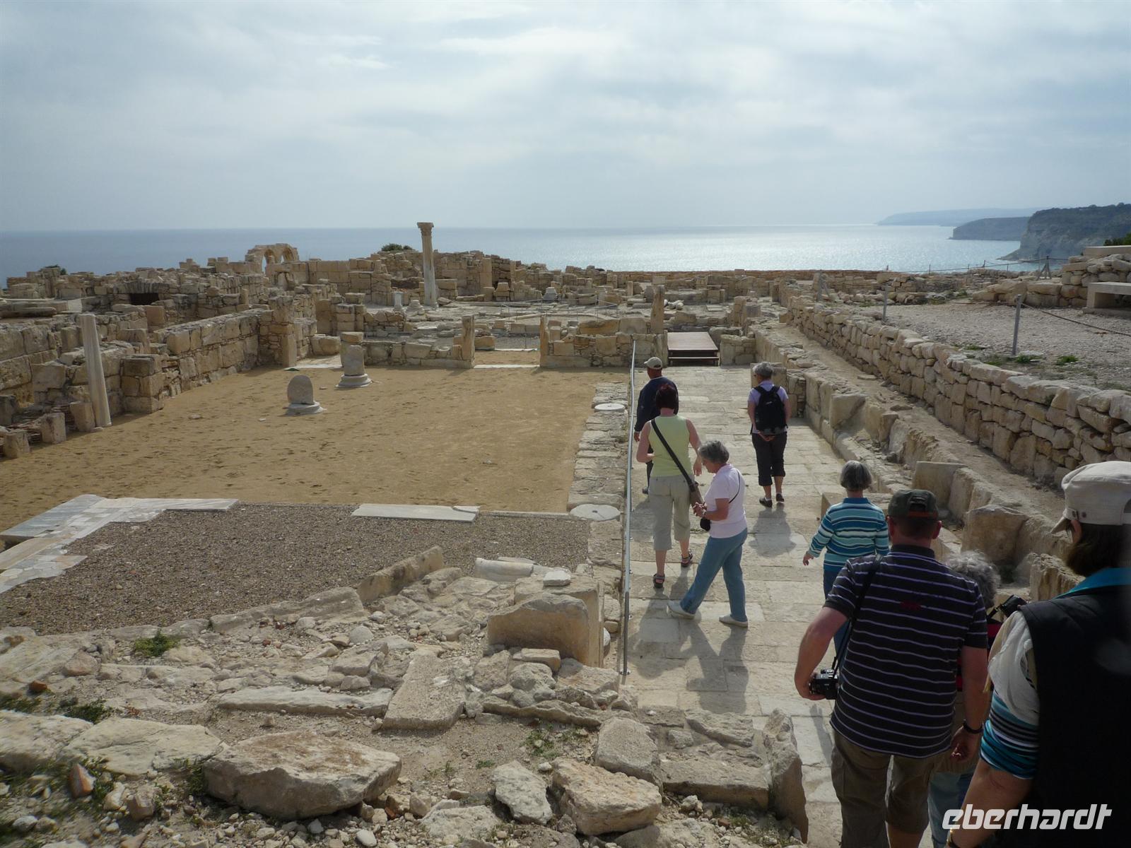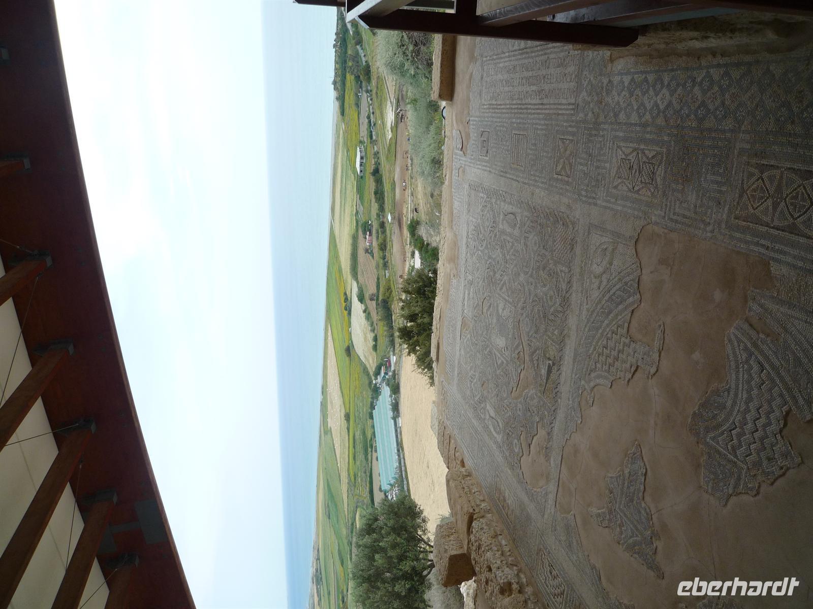 Wir erreichen die Ruinenstätte Kourion - hoch oben über dem Meer gelegen. Die spektakuläre Ausgrabung des Hauses von Eustolios mit wunderbaren Mosaikböden fasziniert uns. Im Römischen Amphitheater lauschen wir den Erklärungen unseres Reiseleiters Antonis, der zu jedem Mosaik eine Geschichte weiß.