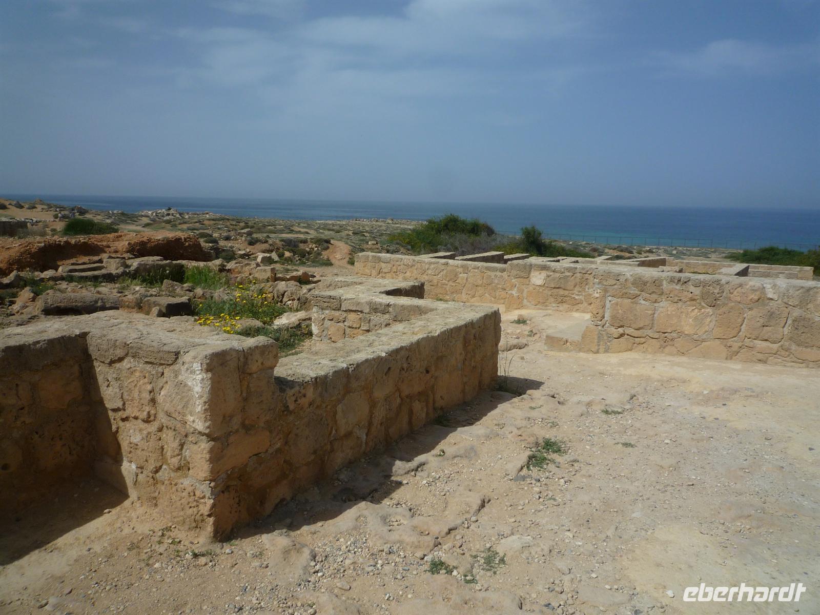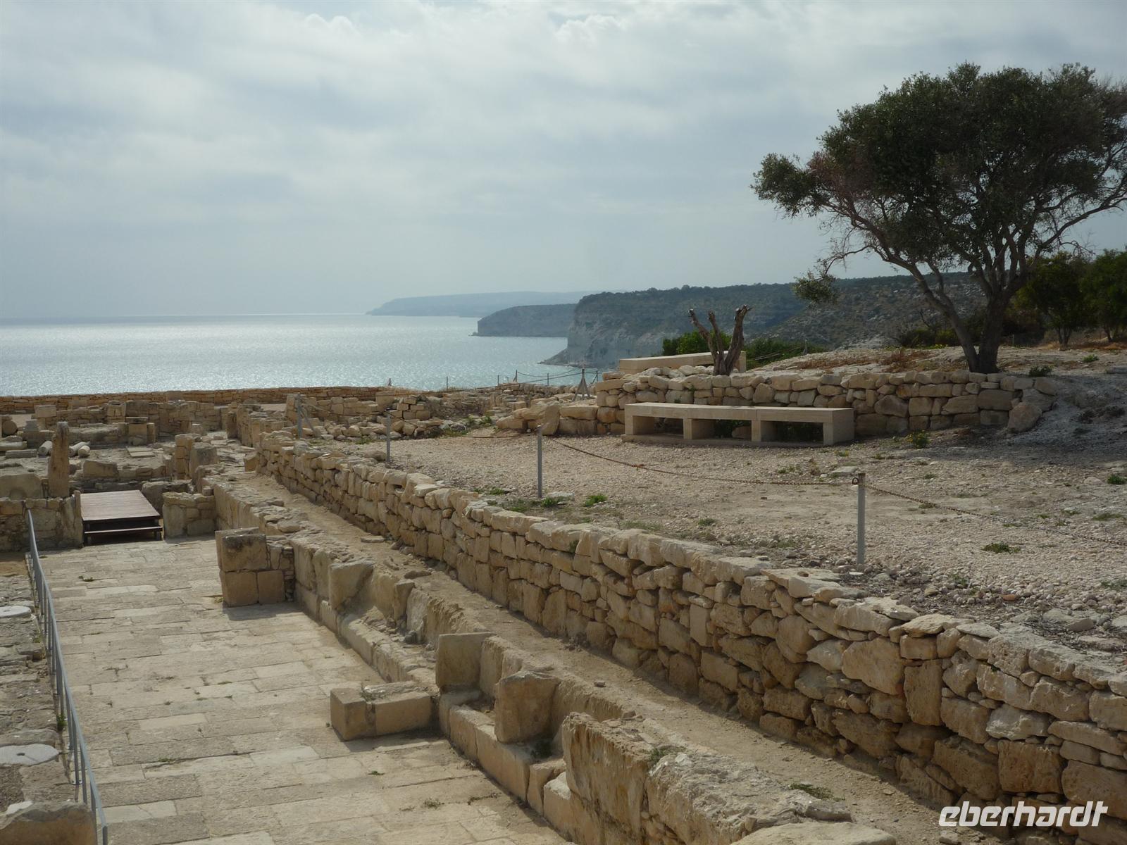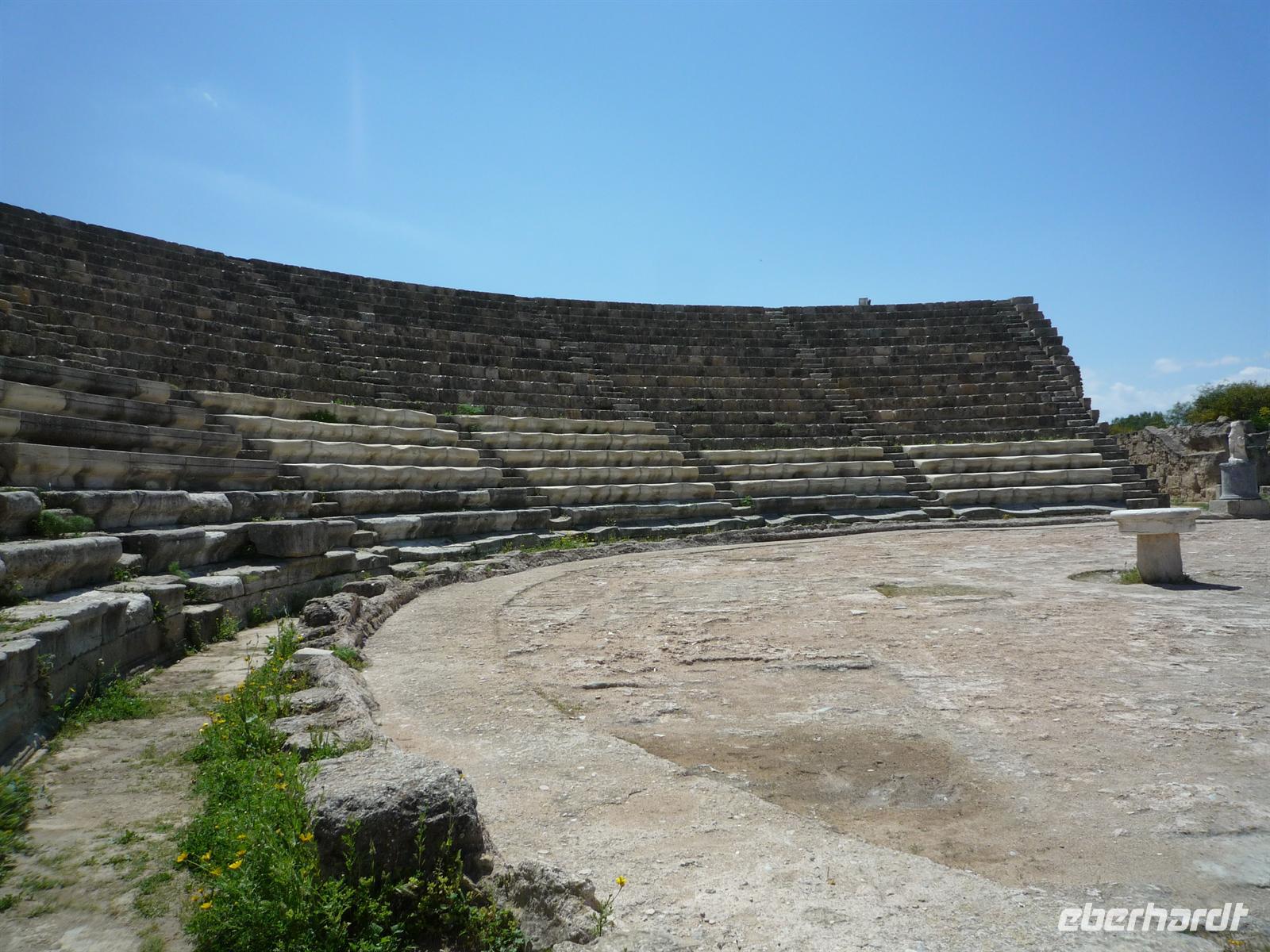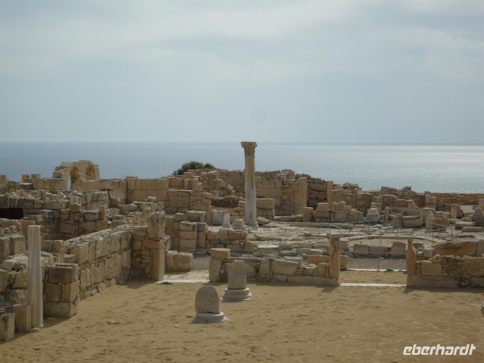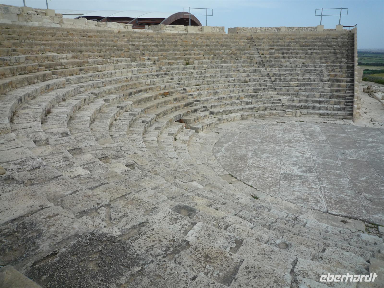 Wir erreichen die Ruinenstätte Kourion - hoch oben über dem Meer gelegen. Die spektakuläre Ausgrabung des Hauses von Eustolios mit wunderbaren Mosaikböden fasziniert uns. Im Römischen Amphitheater lauschen wir den Erklärungen unseres Reiseleiters Antonis, der zu jedem Mosaik eine Geschichte weiß.