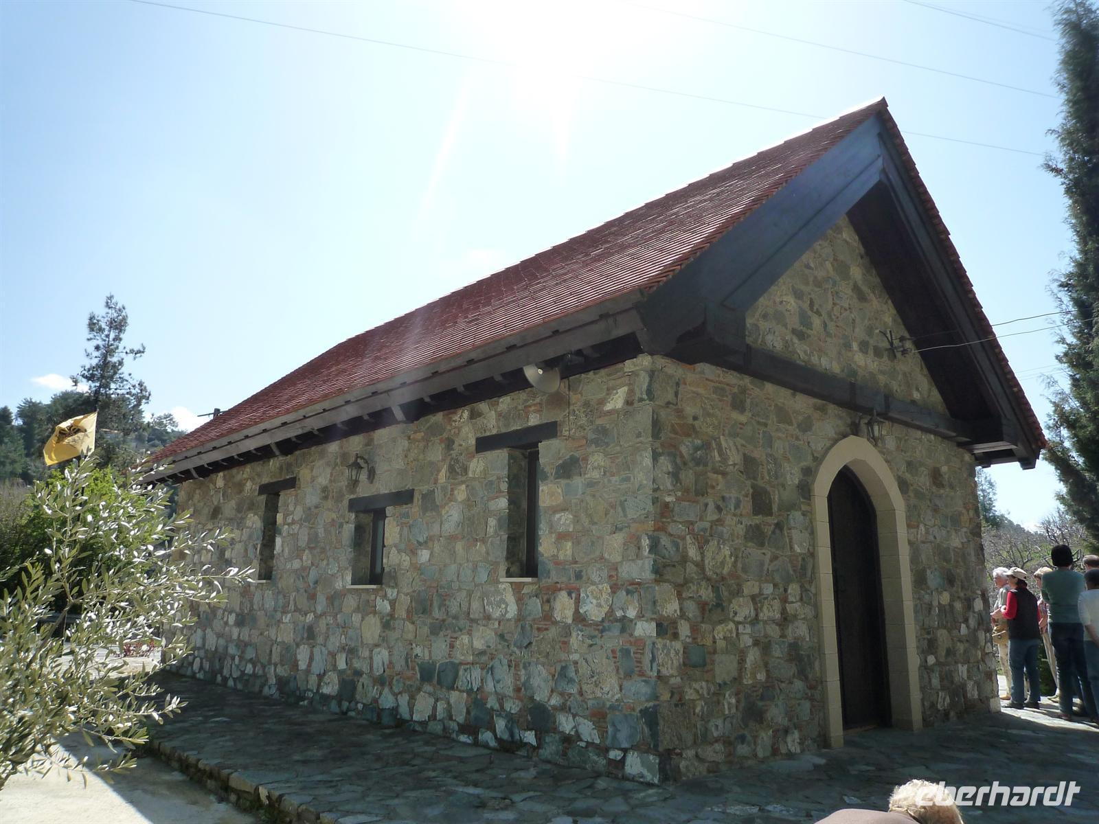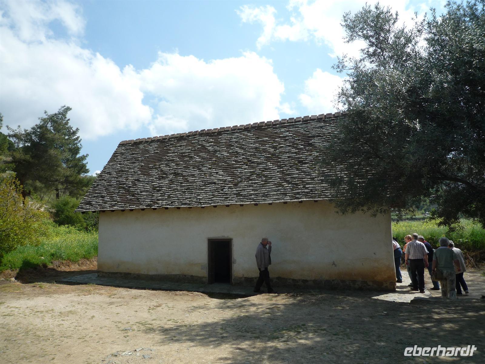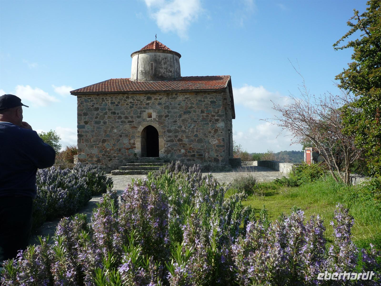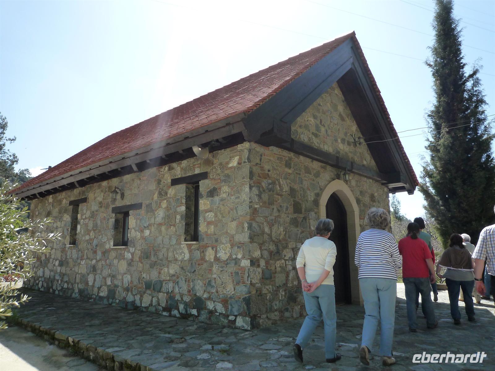 Unsere nächste Station ist eine kleine Kirche, die von einer Familie aus Limasol erst vor einigen Jahren zum Andenken an ihren bei einem Unfall verstorbenen Sohn wieder aufgebaut wurde. Eine Familie unserer Reisegruppe hat über einen alten Schulfreund die Bekanntschaft zu dieser Familie und das ermöglicht uns, diese herrliche kleine Kirche zu besuchen, die extra für uns aufgeschlossen wird. Die Familie reicht uns auch noch Gebäck und eine CD mit Lieblingsmusik des Verstorbenen - ein sehr emotionaler Moment für alle.