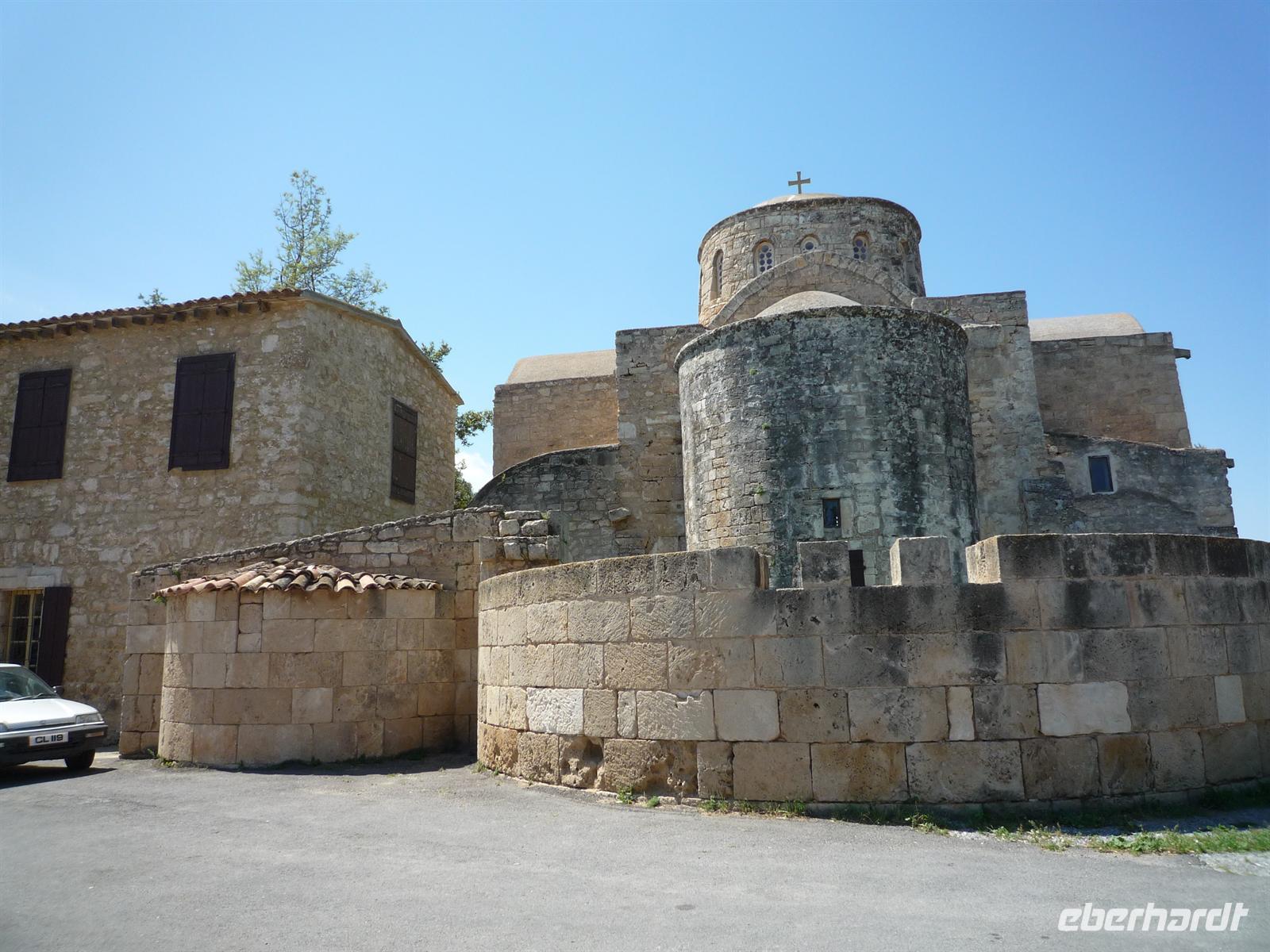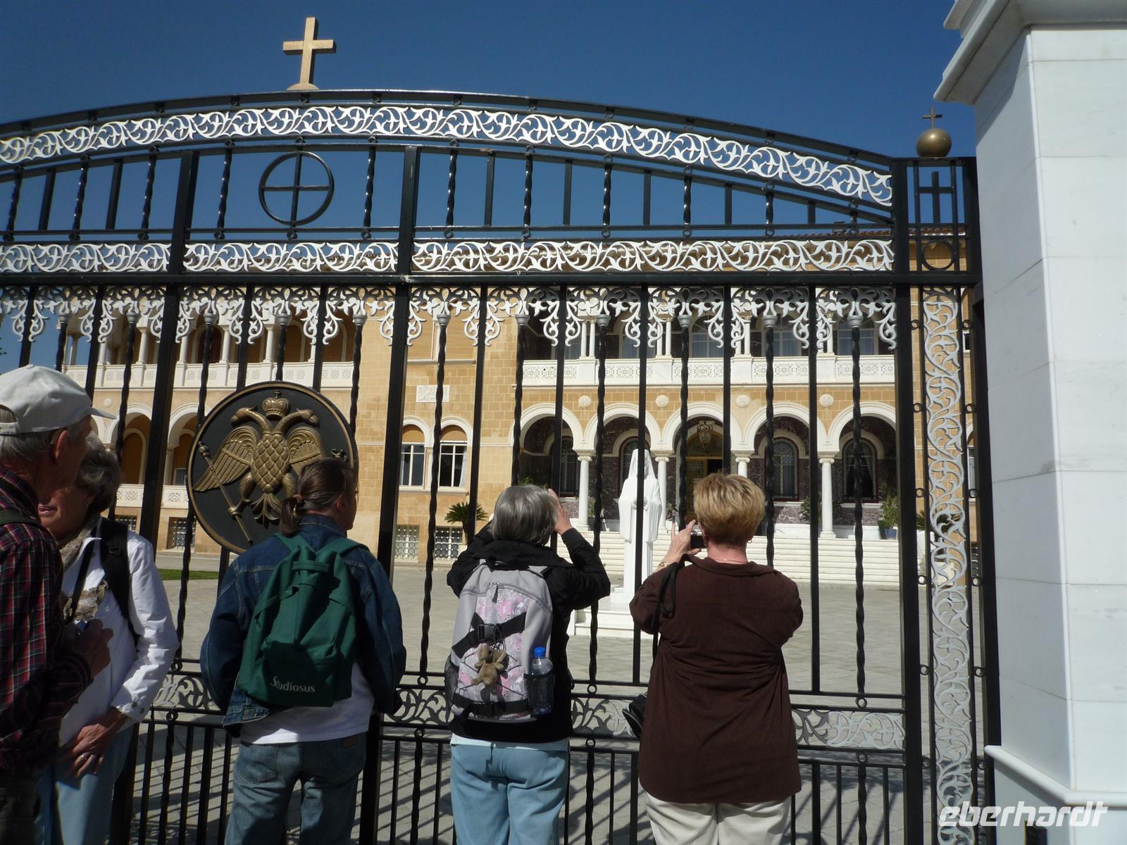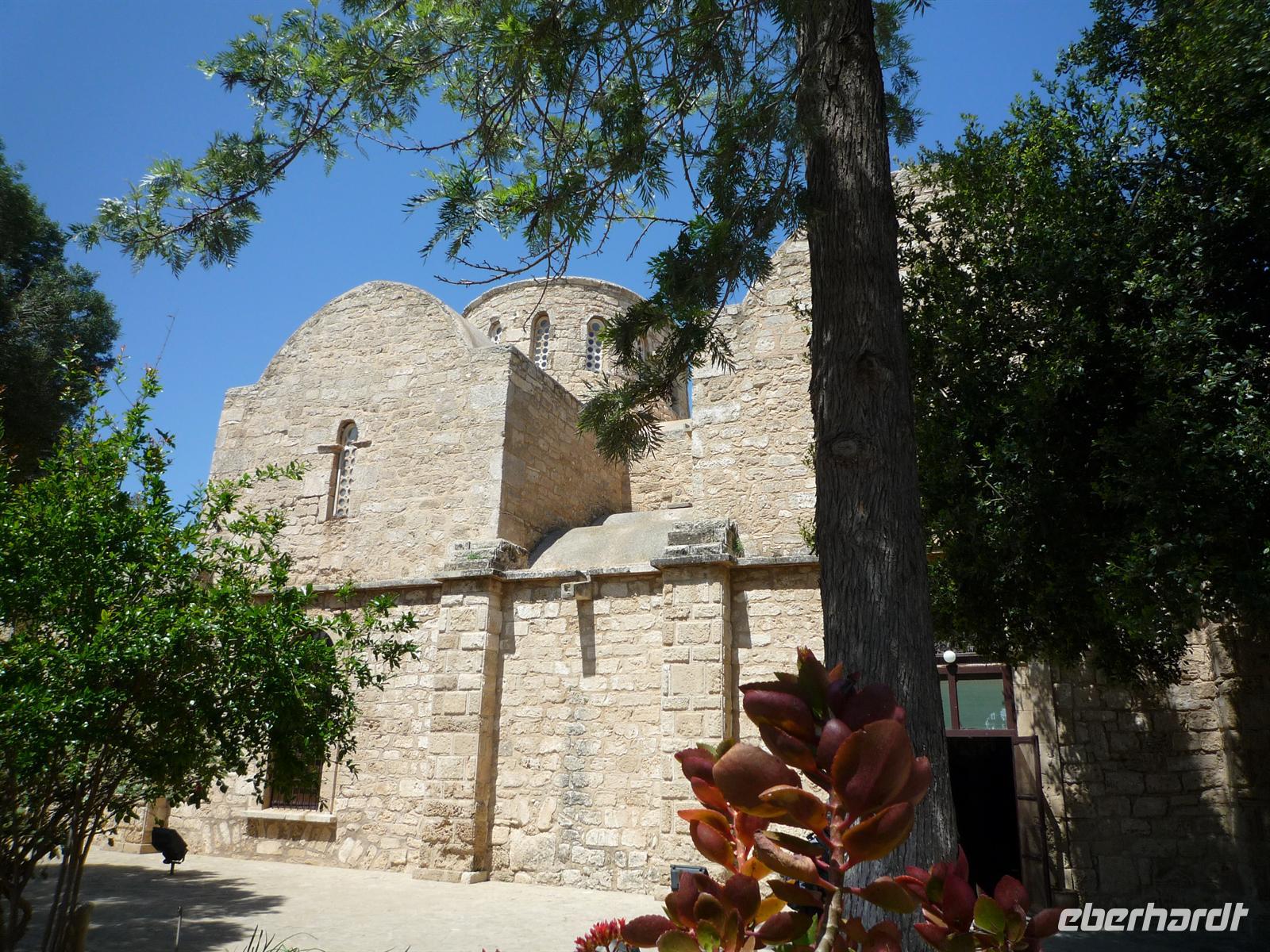 Unsere nächste Station ist eine kleine Kirche, die von einer Familie aus Limasol erst vor einigen Jahren zum Andenken an ihren bei einem Unfall verstorbenen Sohn wieder aufgebaut wurde. Eine Familie unserer Reisegruppe hat über einen alten Schulfreund die Bekanntschaft zu dieser Familie und das ermöglicht uns, diese herrliche kleine Kirche zu besuchen, die extra für uns aufgeschlossen wird. Die Familie reicht uns auch noch Gebäck und eine CD mit Lieblingsmusik des Verstorbenen - ein sehr emotionaler Moment für alle.