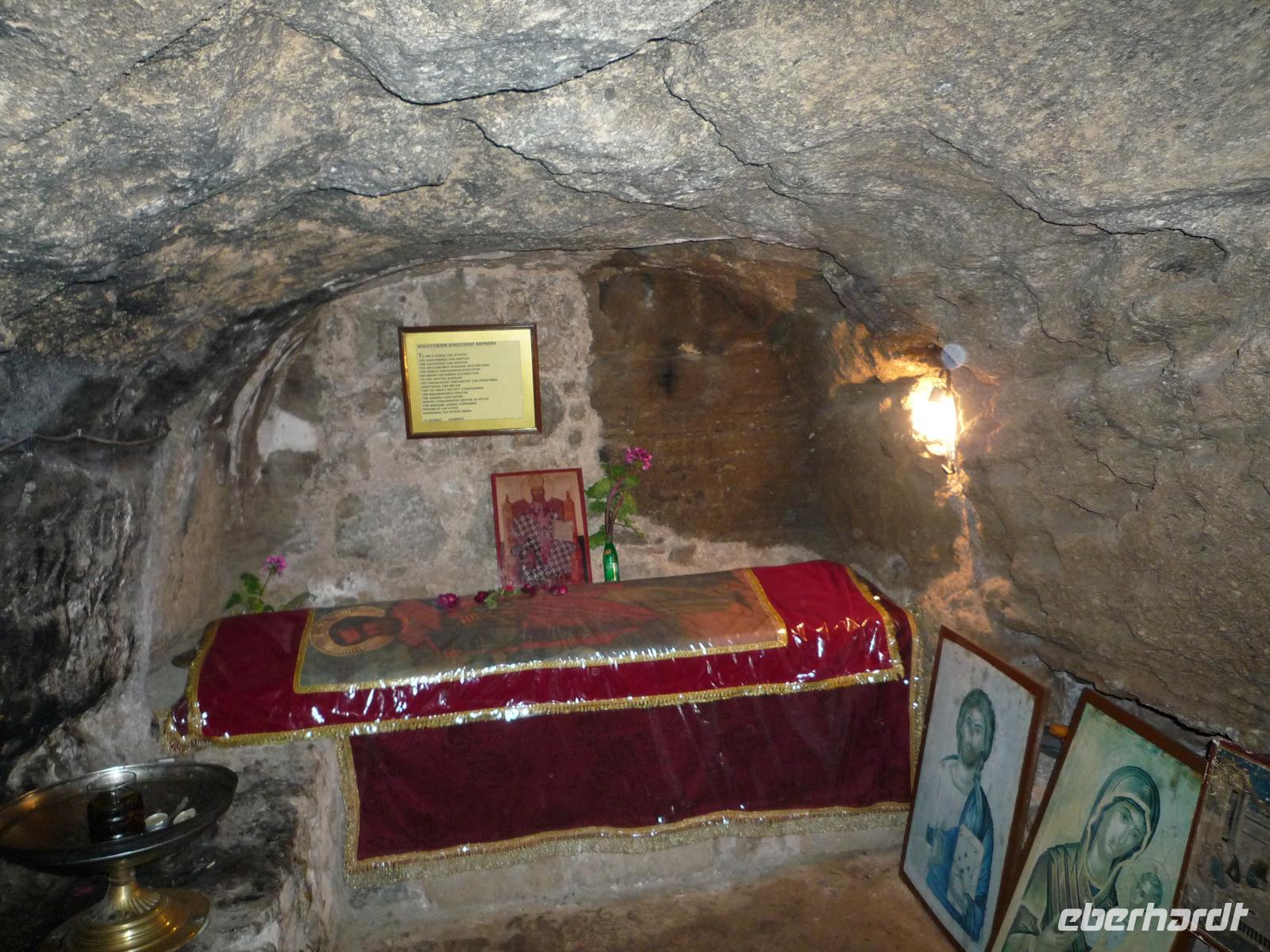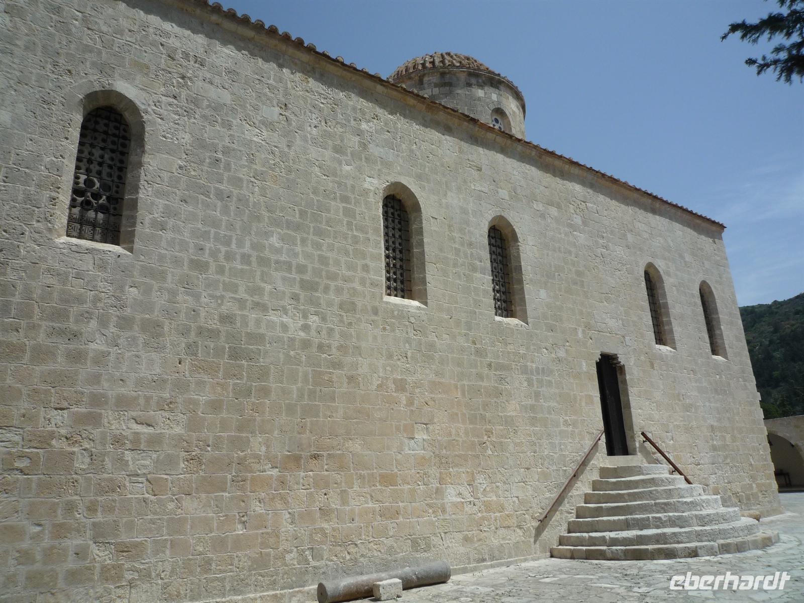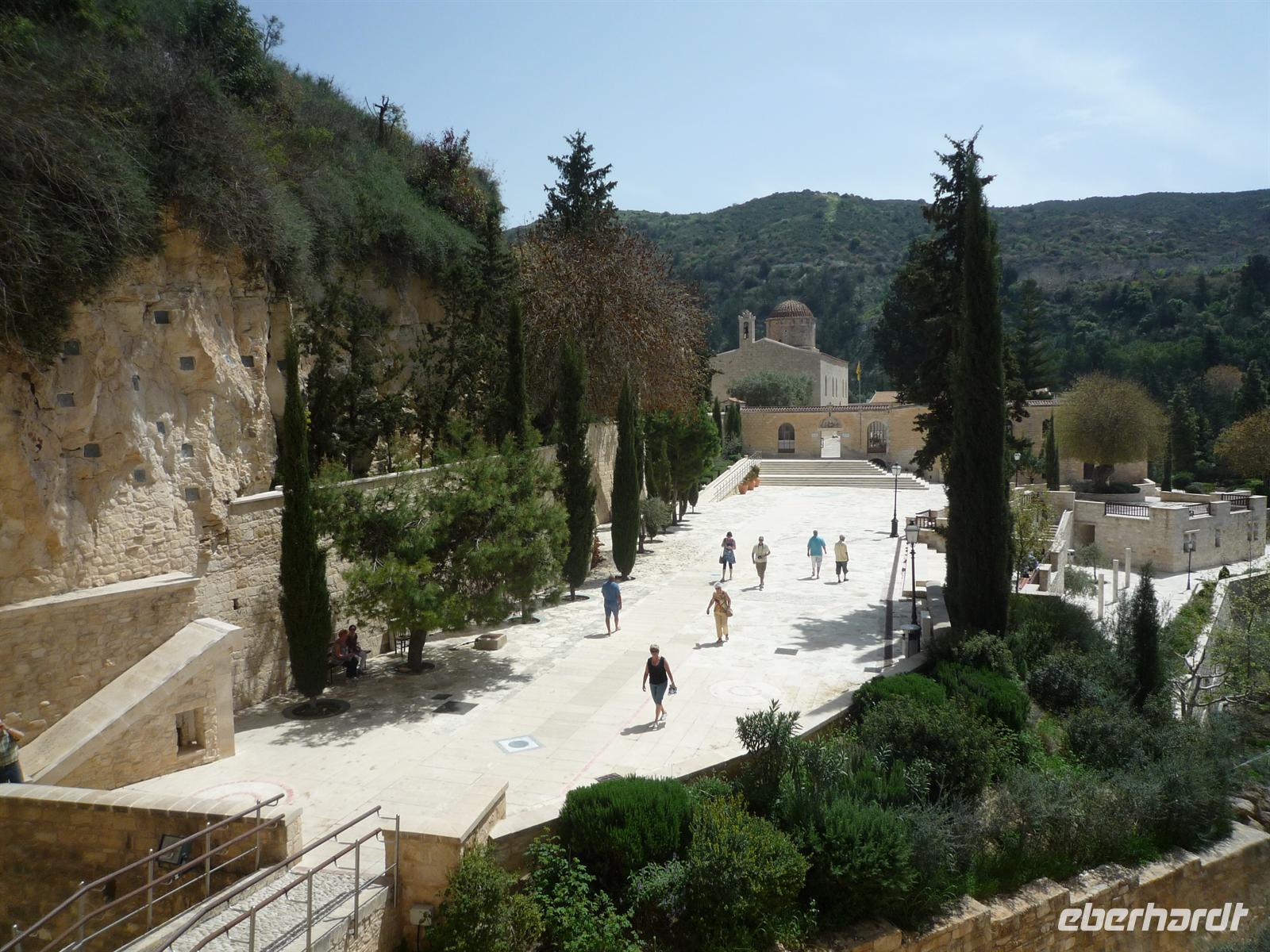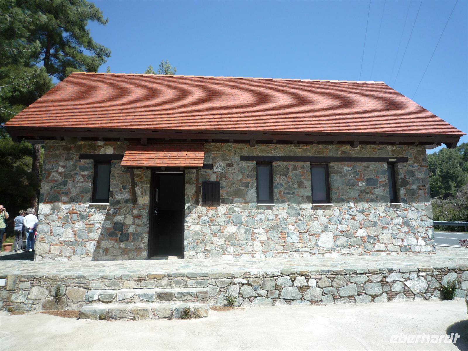 Unsere nächste Station ist eine kleine Kirche, die von einer Familie aus Limasol erst vor einigen Jahren zum Andenken an ihren bei einem Unfall verstorbenen Sohn wieder aufgebaut wurde. Eine Familie unserer Reisegruppe hat über einen alten Schulfreund die Bekanntschaft zu dieser Familie und das ermöglicht uns, diese herrliche kleine Kirche zu besuchen, die extra für uns aufgeschlossen wird. Die Familie reicht uns auch noch Gebäck und eine CD mit Lieblingsmusik des Verstorbenen - ein sehr emotionaler Moment für alle.