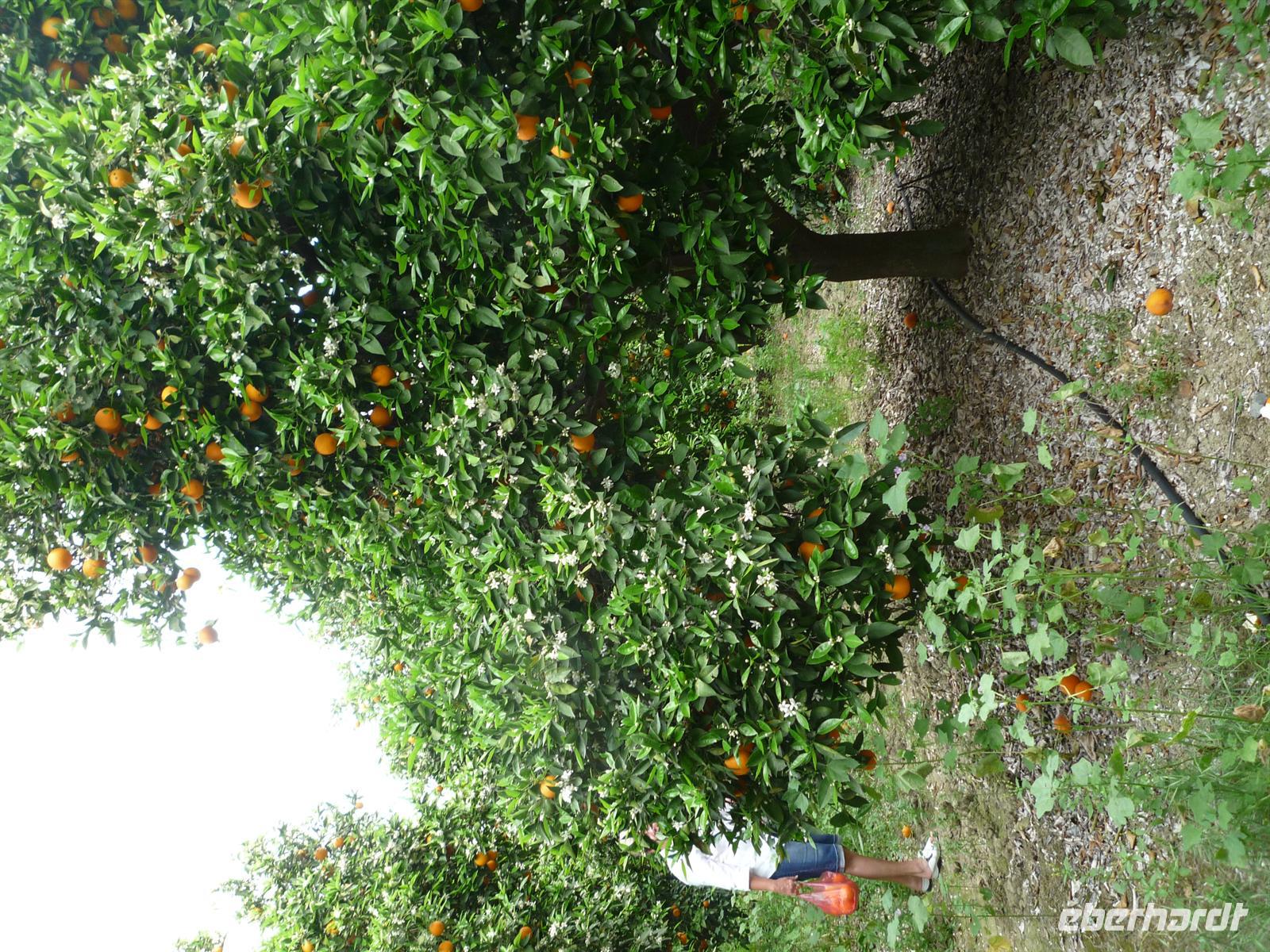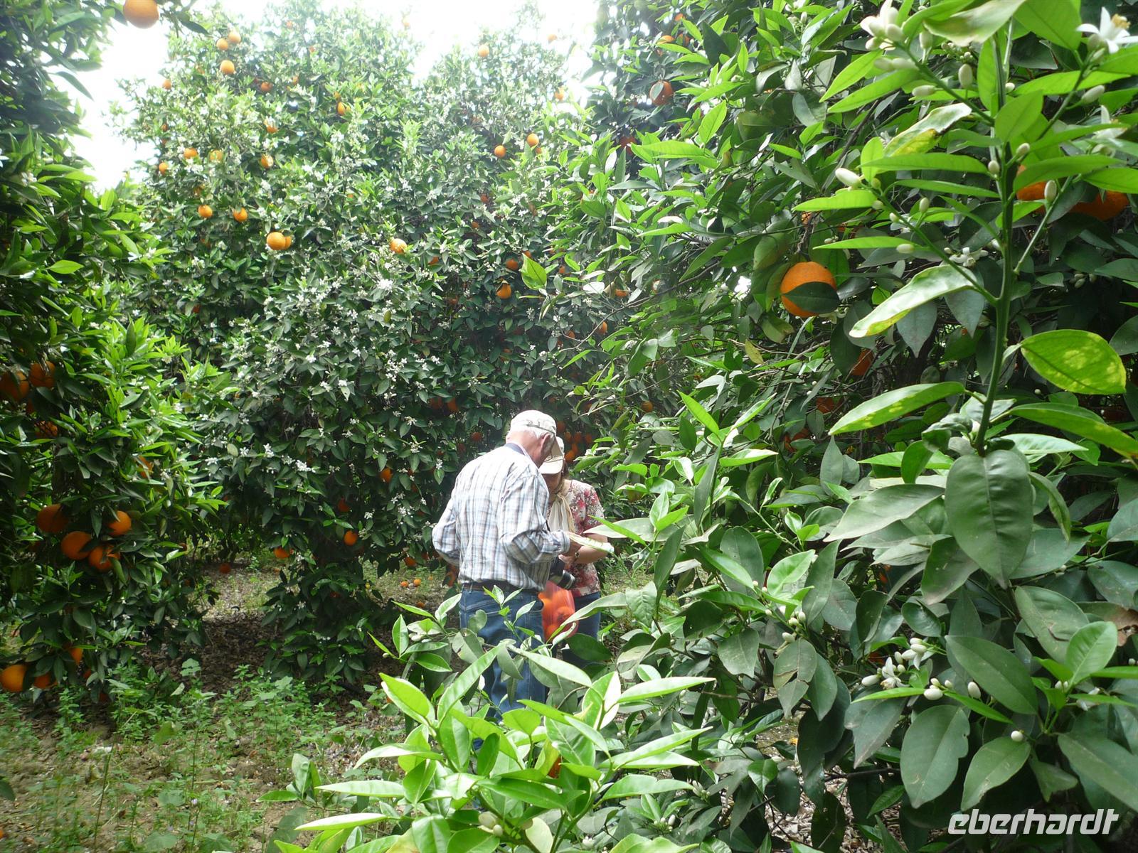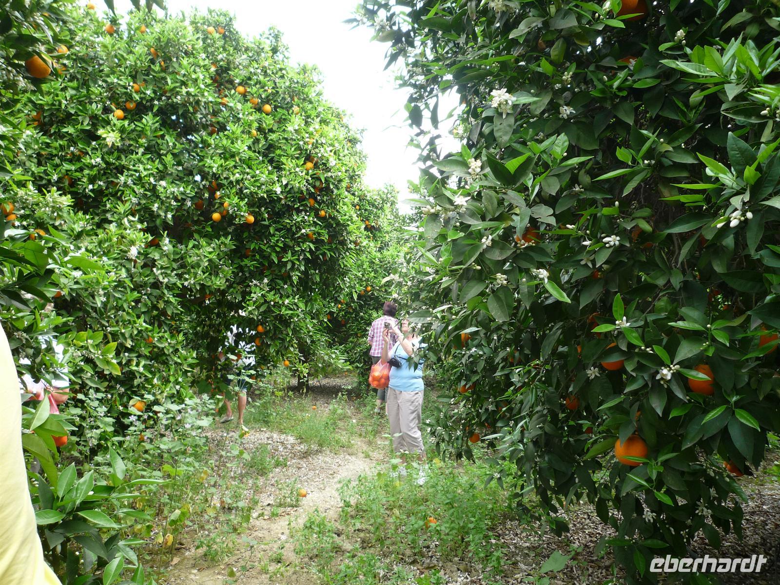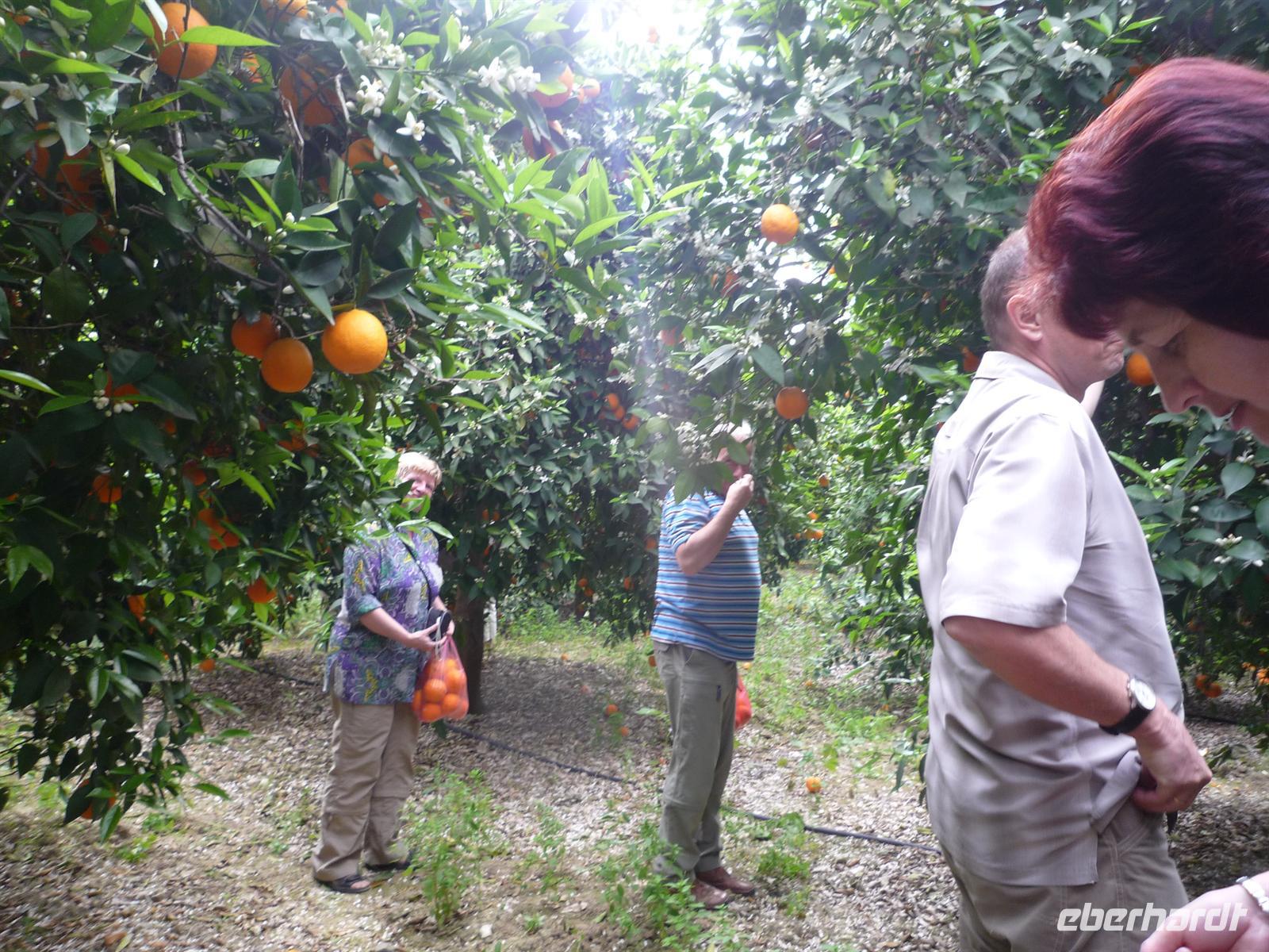 Heute ist unser letzter gemeinsamer Tag, an dem wir Zypern erkunden. Nach einem stärkenden Frühstück fahren wir pünktlich in Richtung Arkamas-Halbinsel. Auf dem Weg halten wir an einer Orangenplantage. Der frisch-fruchtige Zitrusduft betört unsere Sinne. Die Orangenbäume stehen in voller Blüte und tragen gleichzeitig reife Früchte. Antonis und Reisebegleiterin Sylvia steigen auf die Bäume, um die besten Früchte von den oberen Ästen zu pflücken. Jeder füllt sich seinen Beutel mit selbstgepflückten Orangen, selbstverständlich kosten wir gleich die herrlichen Biofrüchte.