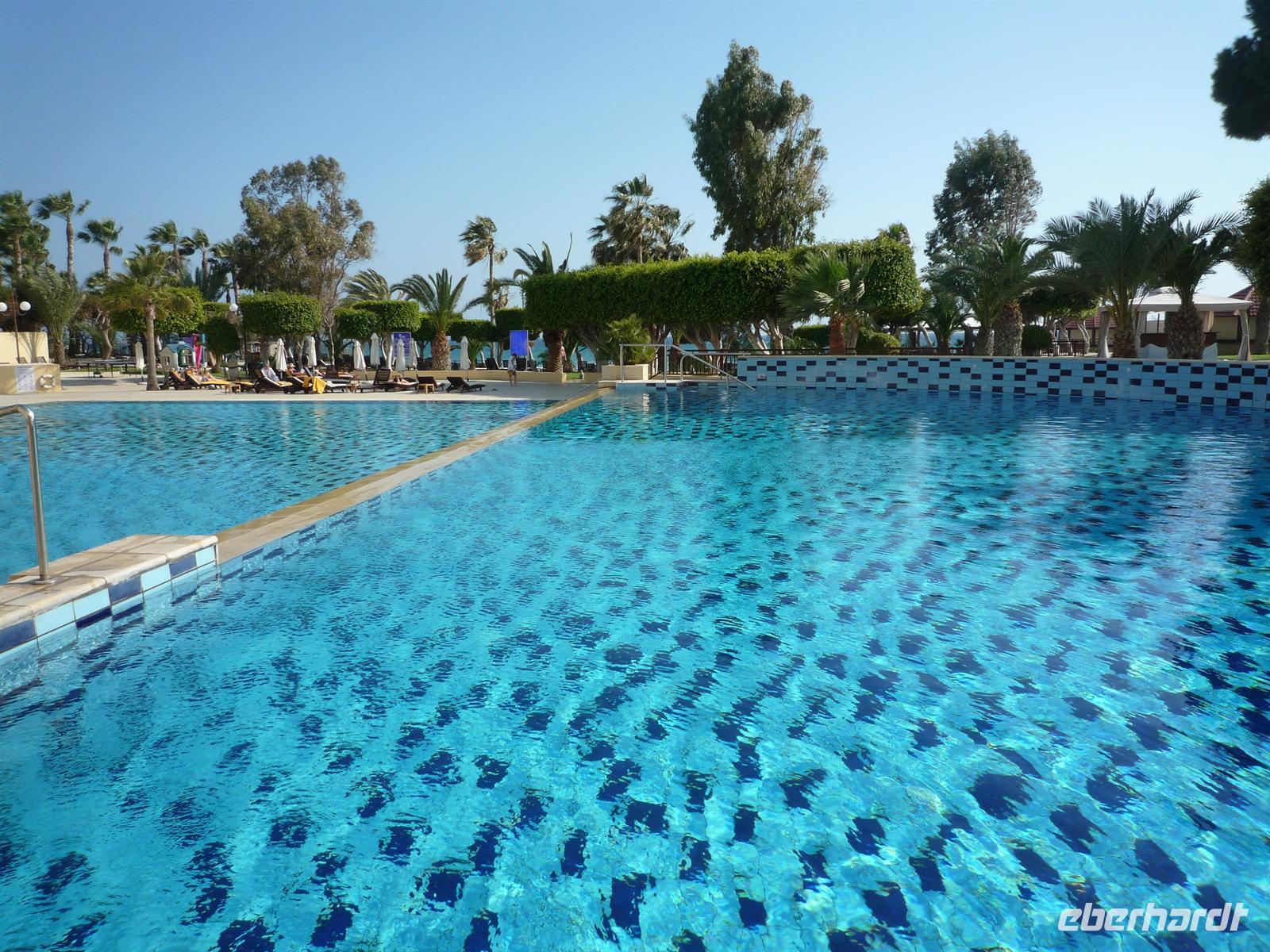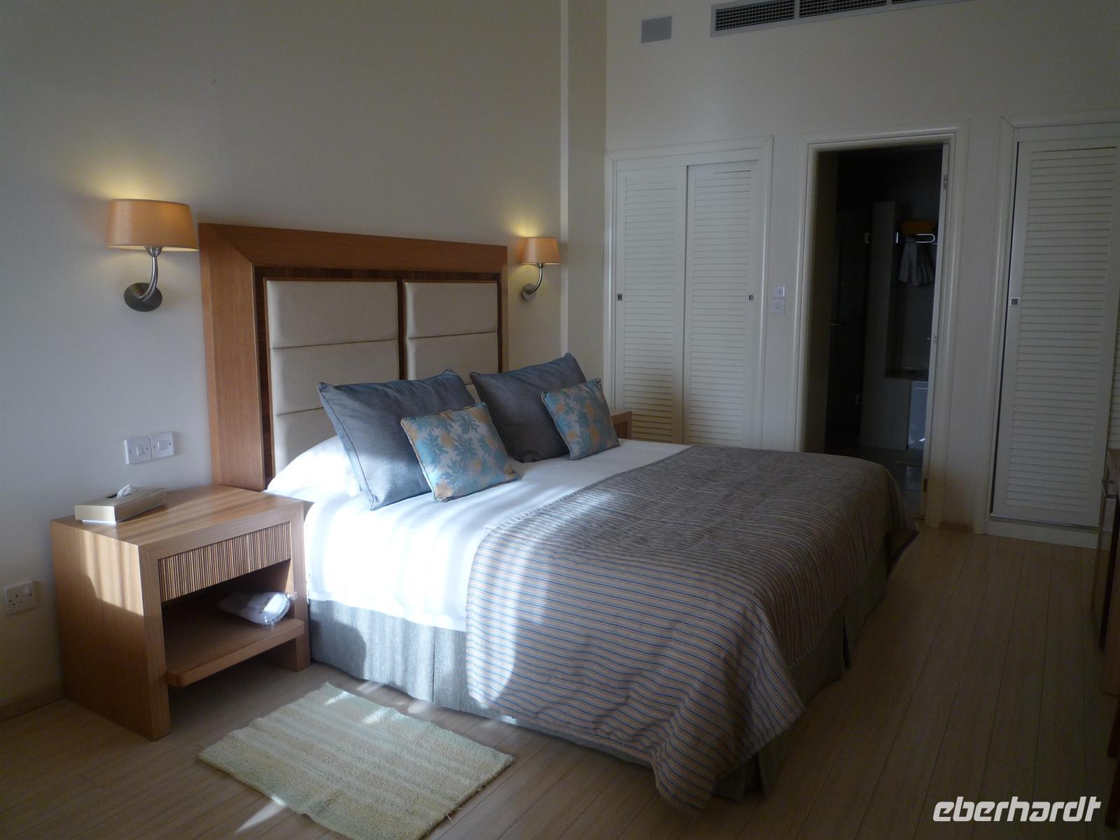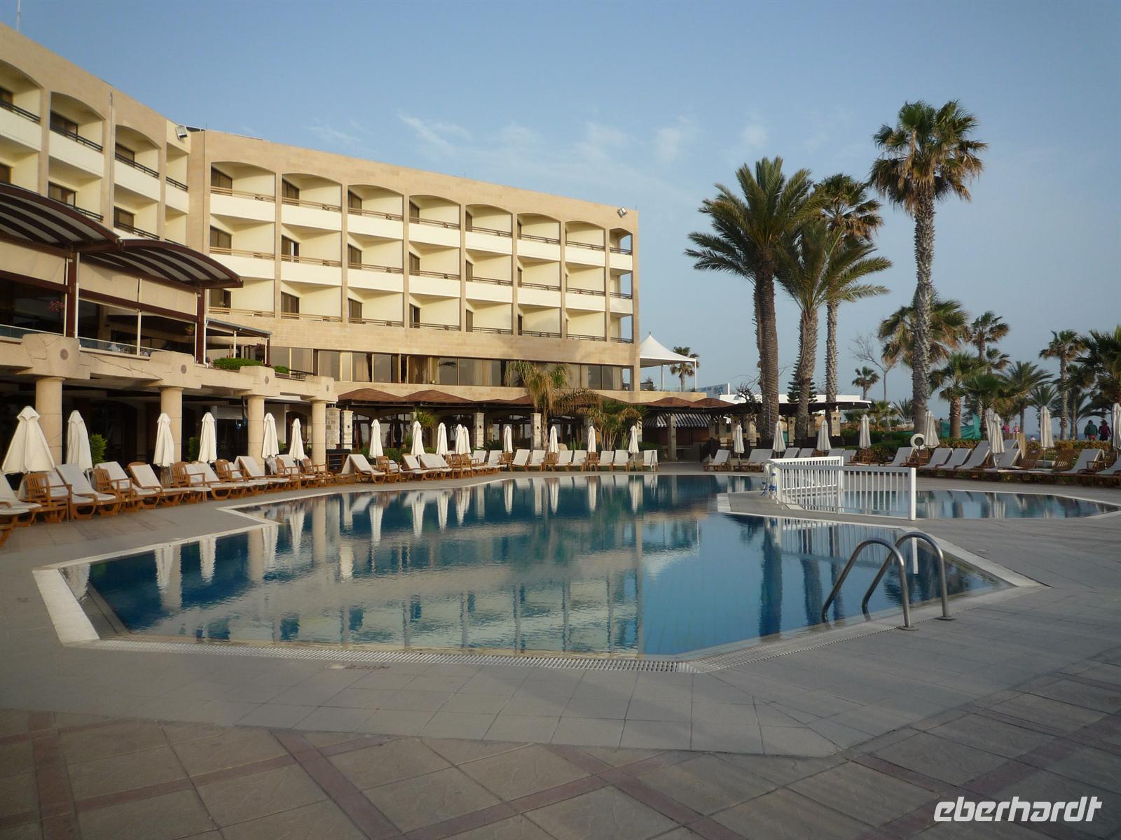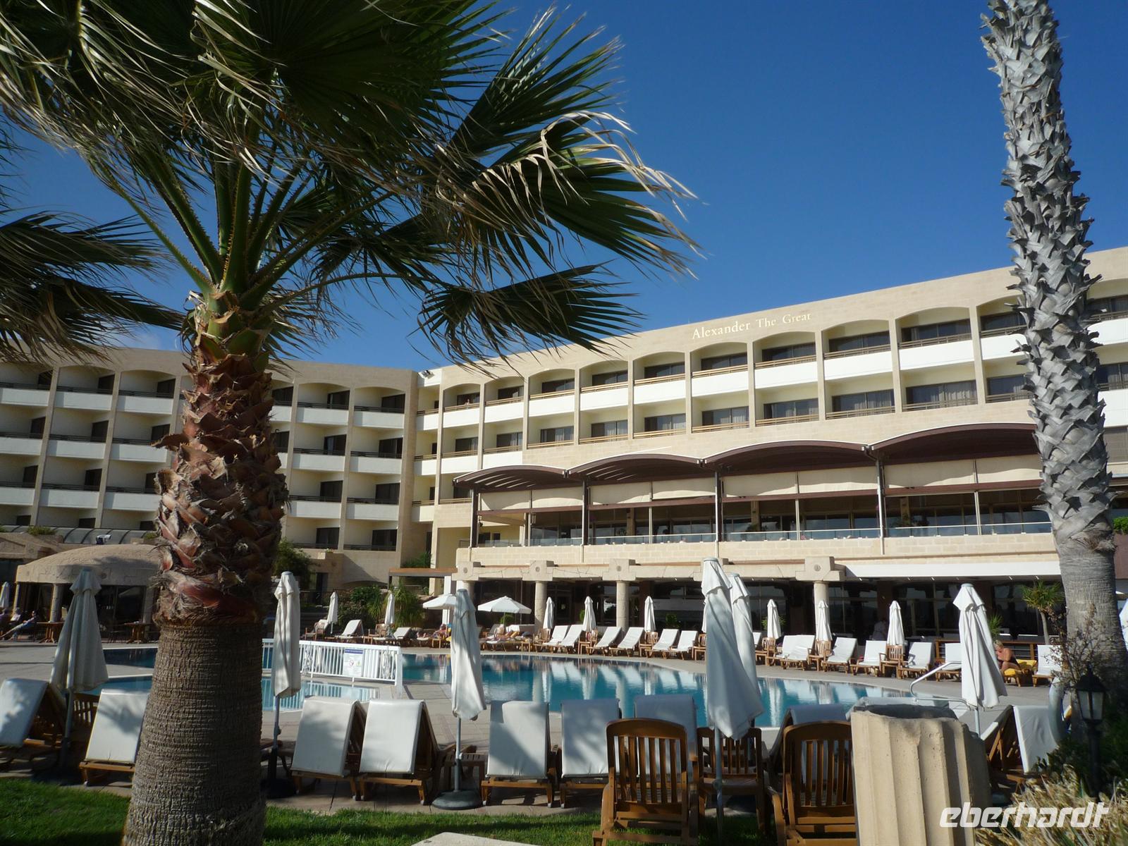 Wir erreichen unser Hotel nach kurzer Fahrt. Als Begrüßungsgetränk reicht Antonis Brandy Sour, der bekannteste Cocktail der Insel. Das Hotel ist herrlich am Meer gelegen und der Hafen von Pafos ist entlang der herrlichen Uferpromenade zu erreichen. Es gibt einen großen Außenpool, aber auch einen Innenpool - wir freuen uns schon auf die nächsten Tage in diesem Hotel.
