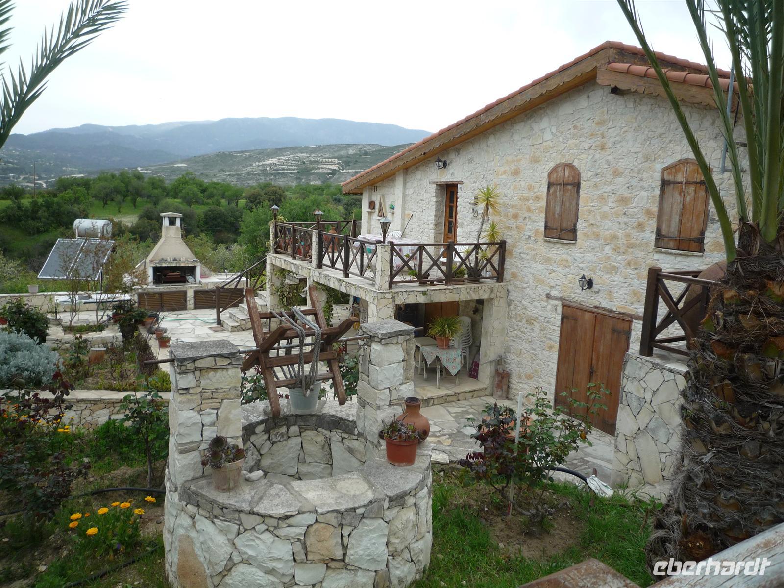 Anschließend waren wir zu einem Weingut Atia Mayph. Ja, auch sehr viel Wein wird in Zypern angebaut. Es gibt im Trodosgebirge sogar eine Weinstraße. Nach einem kurzen Rundgang verkosten wir einen Weiswein, einen Rotwein und einen Rose. Zum Abschluss gibt es noch einen Obstler und einen Dessertwein. Die Stimmung ist ausgelassen. Anschließend verkosten wir noch eingelegte Walnüsse. Auf der Rückfahrt zum Hotel hat Antonio noch eine Überraschung, im Bus verteilt er Obst und Kuchen für alle - er gibt sich wirklich die größte Mühe uns viele kleine und große Überraschungen zu bereiten. Ein schöner Tag mit tollem Wetter geht zu Ende. Wir kehren zurück in unser Hotel in den Bergen.
