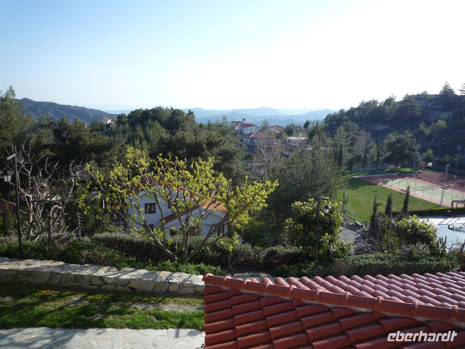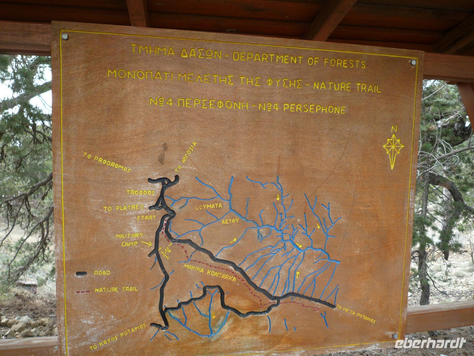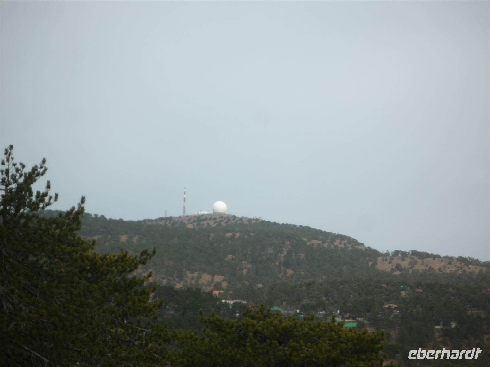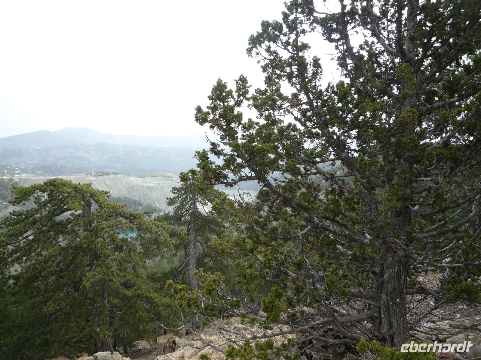 Heute verlassen wir unser Berghotel. Nach einem Fotostopp mit Blick auf das herrlich in die Bergwelt eingerahmte Hotel und einem Stopp am ehemaligen Kinder-Sanatormium in Kyperounta führt uns die Fahrt zum Trodos-Plateau. Unterwegs erzählt uns Antonios viel Interessantes über die Steinformationen und den Vulkanismus auf der Insel. Von dort startet unsere heutige Wanderung im Trodos-Gebirge Persephone-Höhenwanderweg. Auf einer Höhe zwischen 1700 und 1800 Metern atmen wir die herrlich frische und klare Luft und genießen die Aussicht auf den berühmten „ Olymp“, blicken auf den größten Stausee der Insel und die ausgedehnten Pinien, Kiefern- und Zedernwälder. Immer mit Blick auf den „Oymp“, den höchsten Punkt de Trodos-Gebirges, der von einer britischen Radarstation gekrönt wird, wandern wir entlang breiter gerader Wege. Zwischendurch haben sich doch ein paar Regentropfen zu uns verirrt, aber das macht unserer Wanderlust keinen Abbruch.