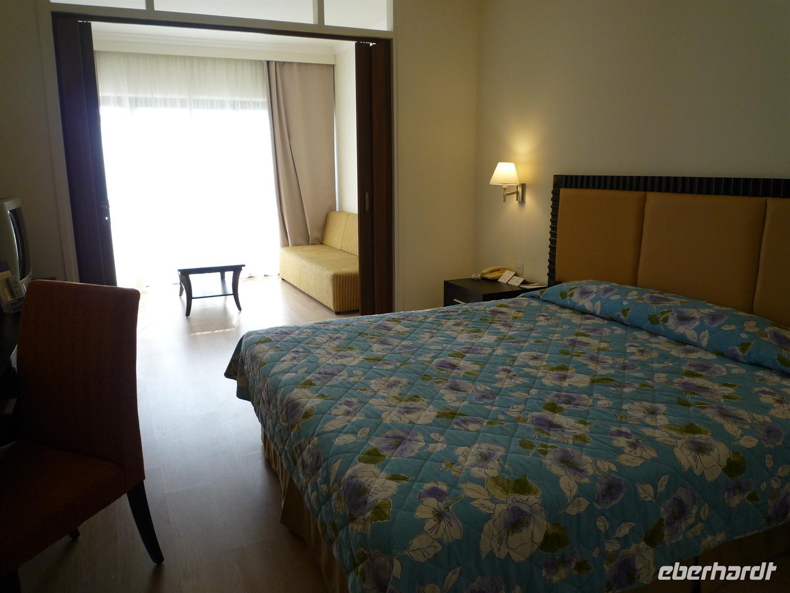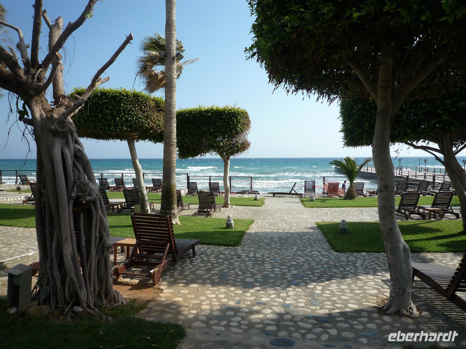 Am Flughafen erwartet uns unser Reisebus, etwas klein, aber das sollte nur für heute so sein und dann geht es ca. 40 Minuten zum Hotel, ca. 10 Kilometer von Limassol entfernt, direkt am Strand.