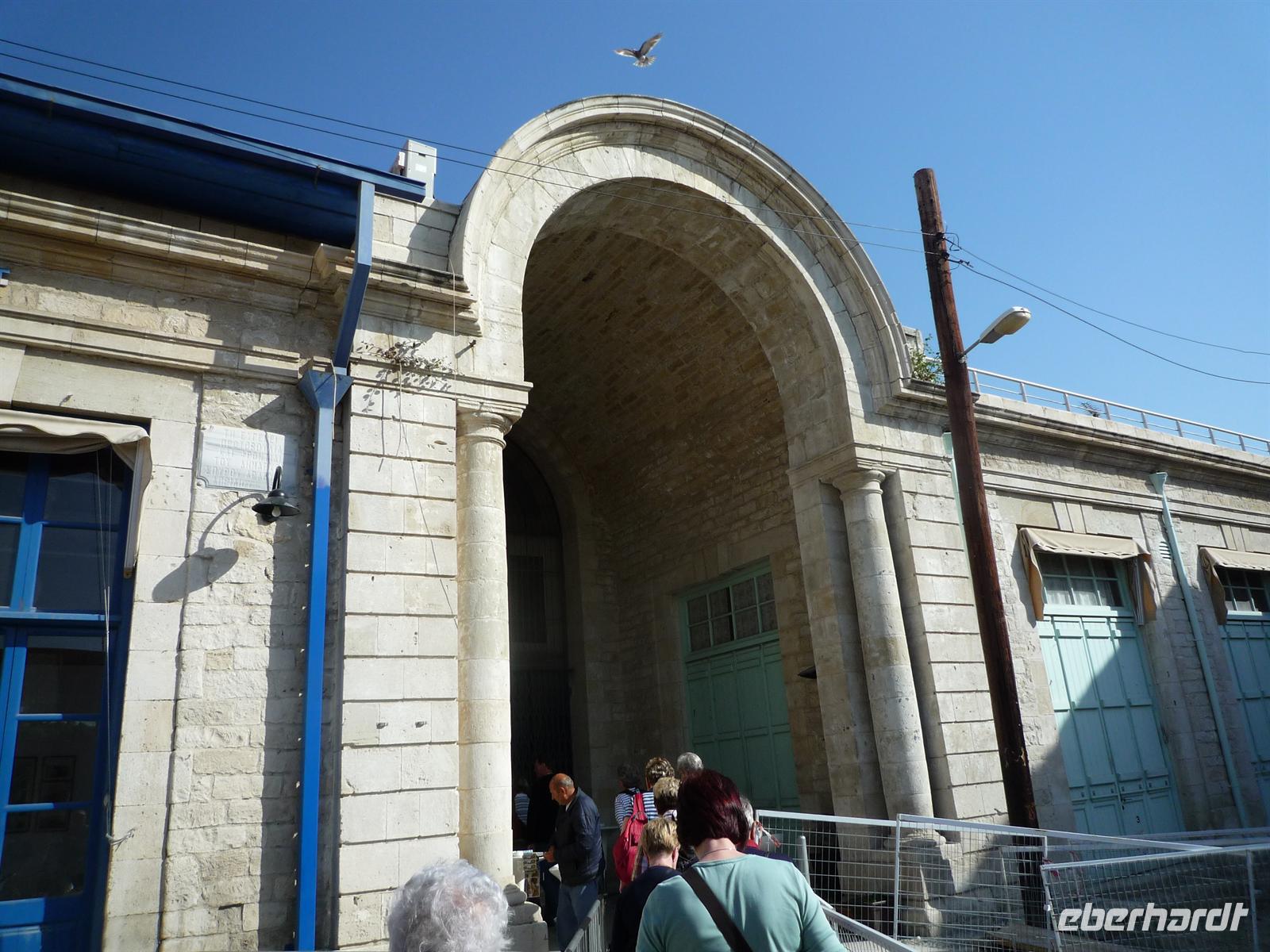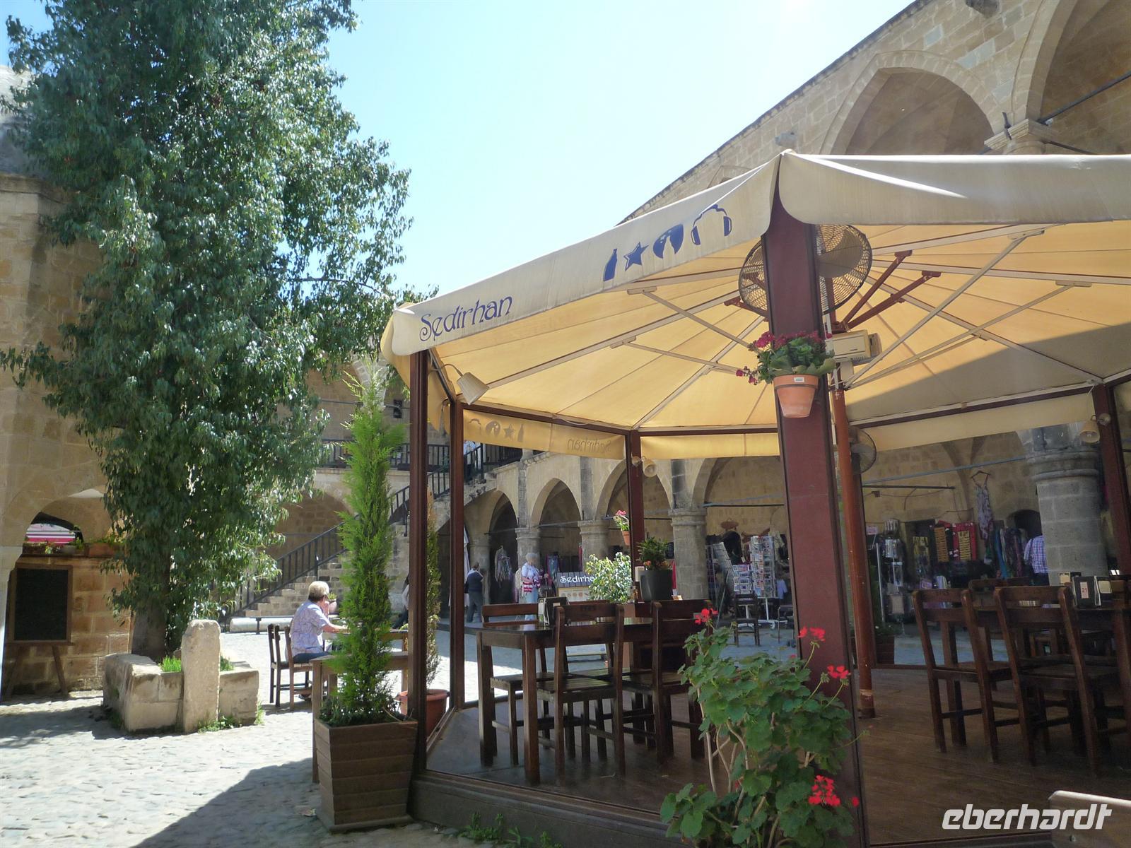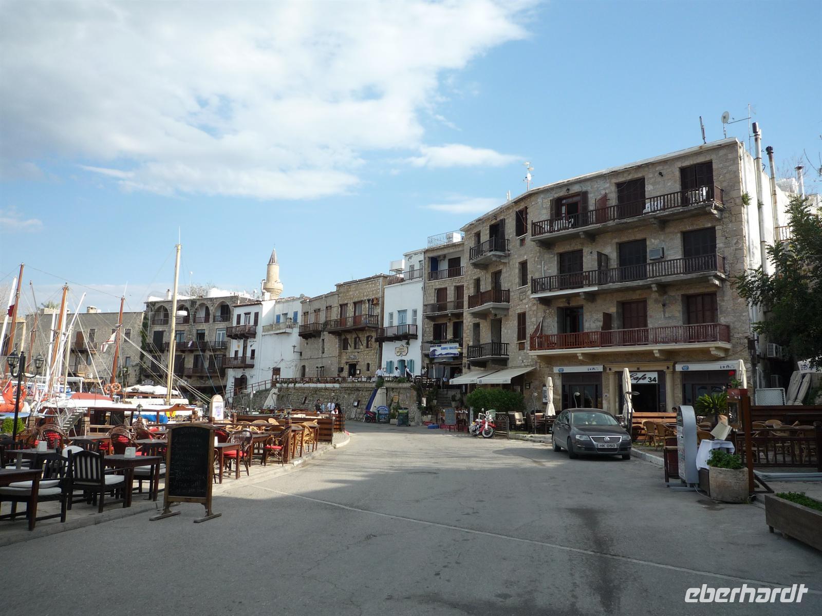 Antonis lässt einige Gäste diese Szene bildhaft darstellen. Einen romantischeren Platz kann man sich nicht vorstellen. Nach dem Abstieg erreichen wir mit dem Bus die alte Klosterruine Bellapais, das Mekka aller Zypernromantiker seit Erscheinen des Zypern-Romans „Bittere Limonen“ von Lawrence Durell. Nach einem Spaziergang durch das Dorf erreichen wir das Wohnhaus, was im Buch ausgebaut wurde und können uns nun mehr darunter vorstellen. Anschließend besichtigen wir das romantisch am Wasser gelegene Castell. Nach den vielen Eindrücken und Erklärungen von unserem Antonis haben wir uns eine stärkende Mittagspause im Restaurant direkt am Castell verdient. Die Klosterruine hält, was die Reiseführer und Dichter versprechen, beeindruckt mit phantastischer Lage, Kreuzrippenarchitektur und erhabener Größe. Anschließend zieht es uns buchstäblich zu Tale, ans Meer, in die mehr als 2000 Jahre alte Hafenstadt Kyrenia. Wir staunen über die gut erhaltene Hafenfestung, die schon im frühen Mittelalter entstanden ist, wundern uns aber nicht mehr darüber, als wir erfahren, dass sie bis vor wenigen Jahren noch als Garnison und Gefängnis in Betrieb war. Im Schiffswrack-Museum erfahren wir mehr über den Bau von Schiffen und lernen auch eine echte historische Person kennen. Eine Archäologin aus Amerika, die damals beim ersten Schiffsfund dabei war, ist heute hier noch mit der Restaurantion der Schiffe beschäftigt. Wir bewundern ihre Fotos an der Wand und staunen, dass Sie heute noch an diesem Projekt arbeitet. Anschließend erkunden wir das Leben im alten Hafen von Kyrenia mit alten und neuen Fischer- und Touristenbooten, Fischrestaurants und Souvenirläden.