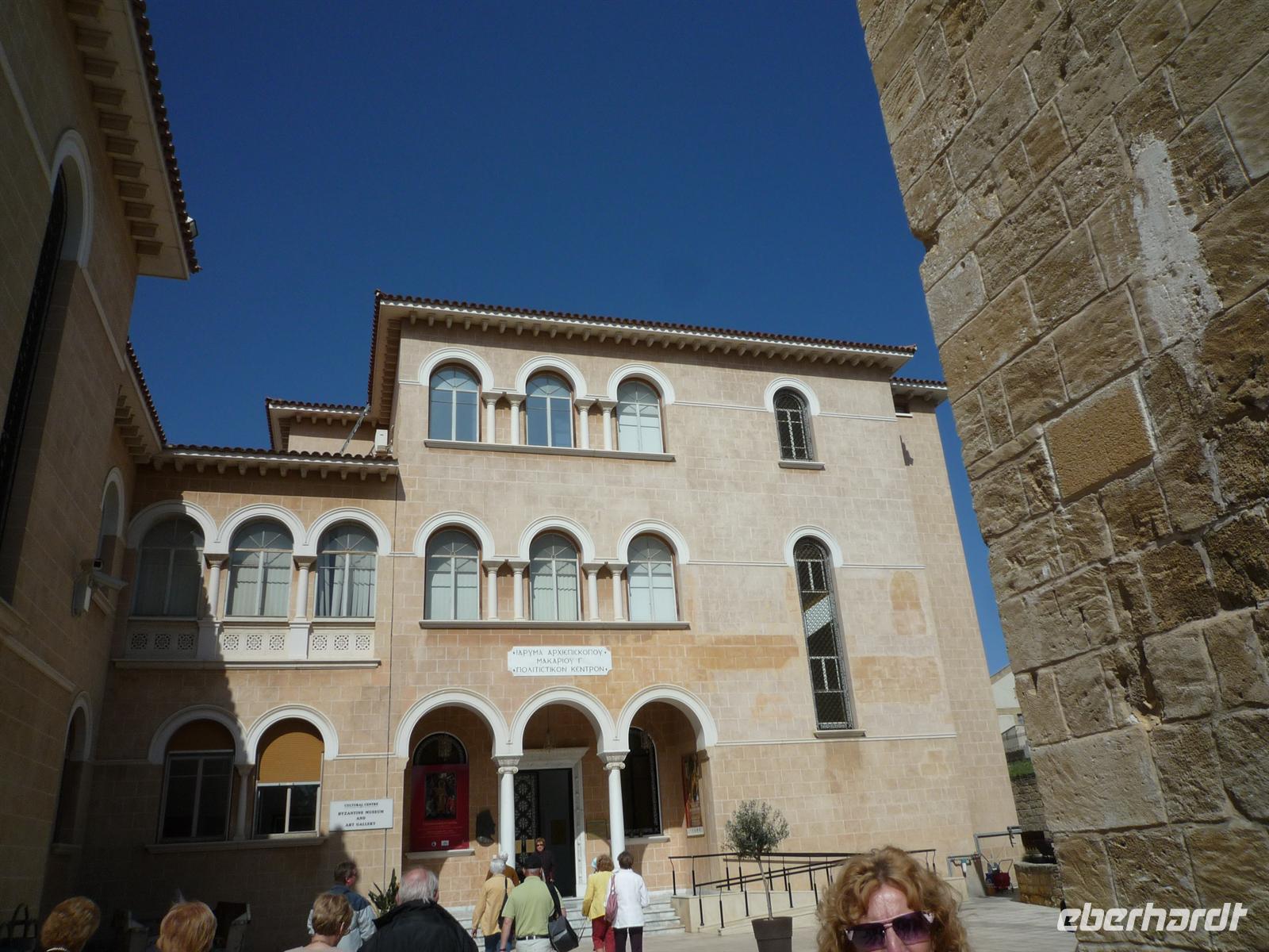 Den Tag beginnen wir erneut mit einem reichhaltigen Frühstück in strahlendem Sonnenschein in unserem Strandhotel in Limassol. Wir starten pünktlich zur Erkundungstour nach Nicosia. Unseren Stadtrundgang beginnen wir am Freiheitsdenkmal von 1970, welches das Ende des britischen Kolonialismus symbolisiert. Nach einigen Minuten erreichen wir den Erzbischöflichen Palast, den Erzbischof Makarios III. erbauen ließ. Bis heute wird der erste Präsident des Republik von vielen Griechisch sprechenden Zyprioten als bedeutender politischer Führer im Widerstand gegen die britischen Kolonialherrscher verehrt.