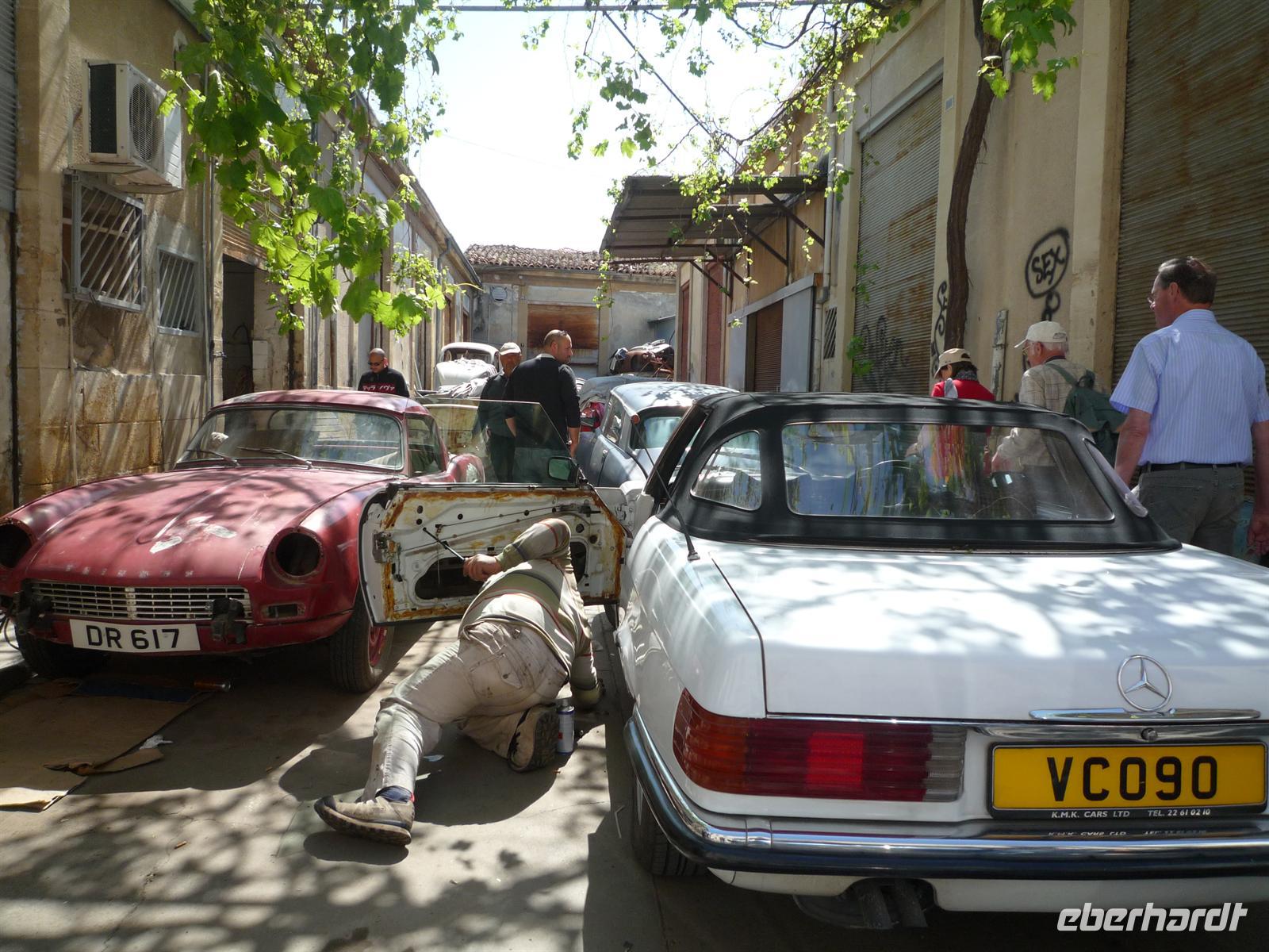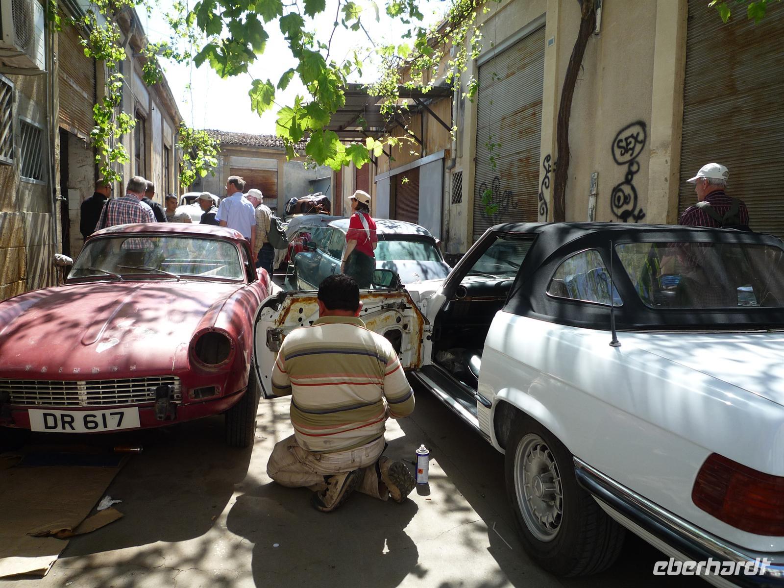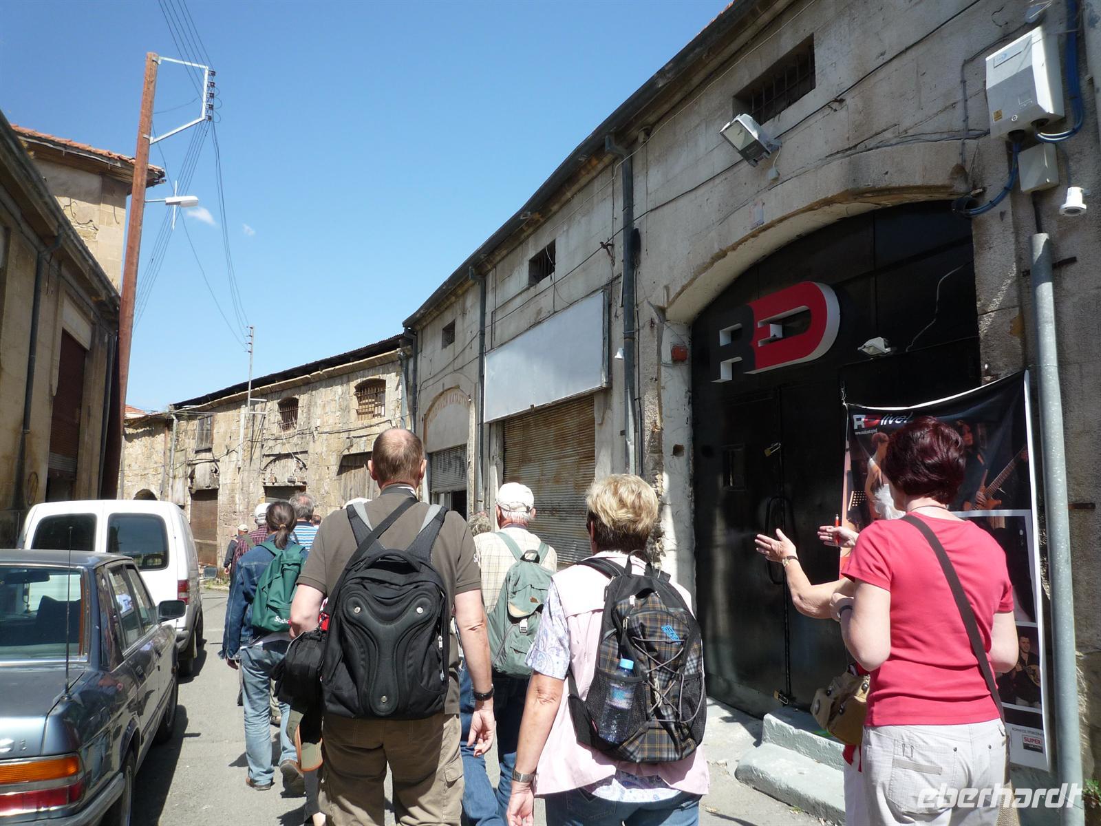 In der orthodoxen Johannes-Kirche bestaunen wir die bunt bemalten Wände und Decken, die Geschichten des Neuen Testaments in Bildern lebendig werden lassen. Wir spazieren weiter entlang der Demarkationslinie durch die Altstadt, schauen in eine Autowerkstatt für Oldtimer und erreichen die Haupt-Einkaufsstraße von Nikosia. Dort überqueren wir die Stadtgrenze in Nicosia in den Nordteil der Stadt. Mit unserem Ausweis und unserem ausgefüllten Visum der letzten Tage beschränken sich die Formalitäten auf das Nötigste.