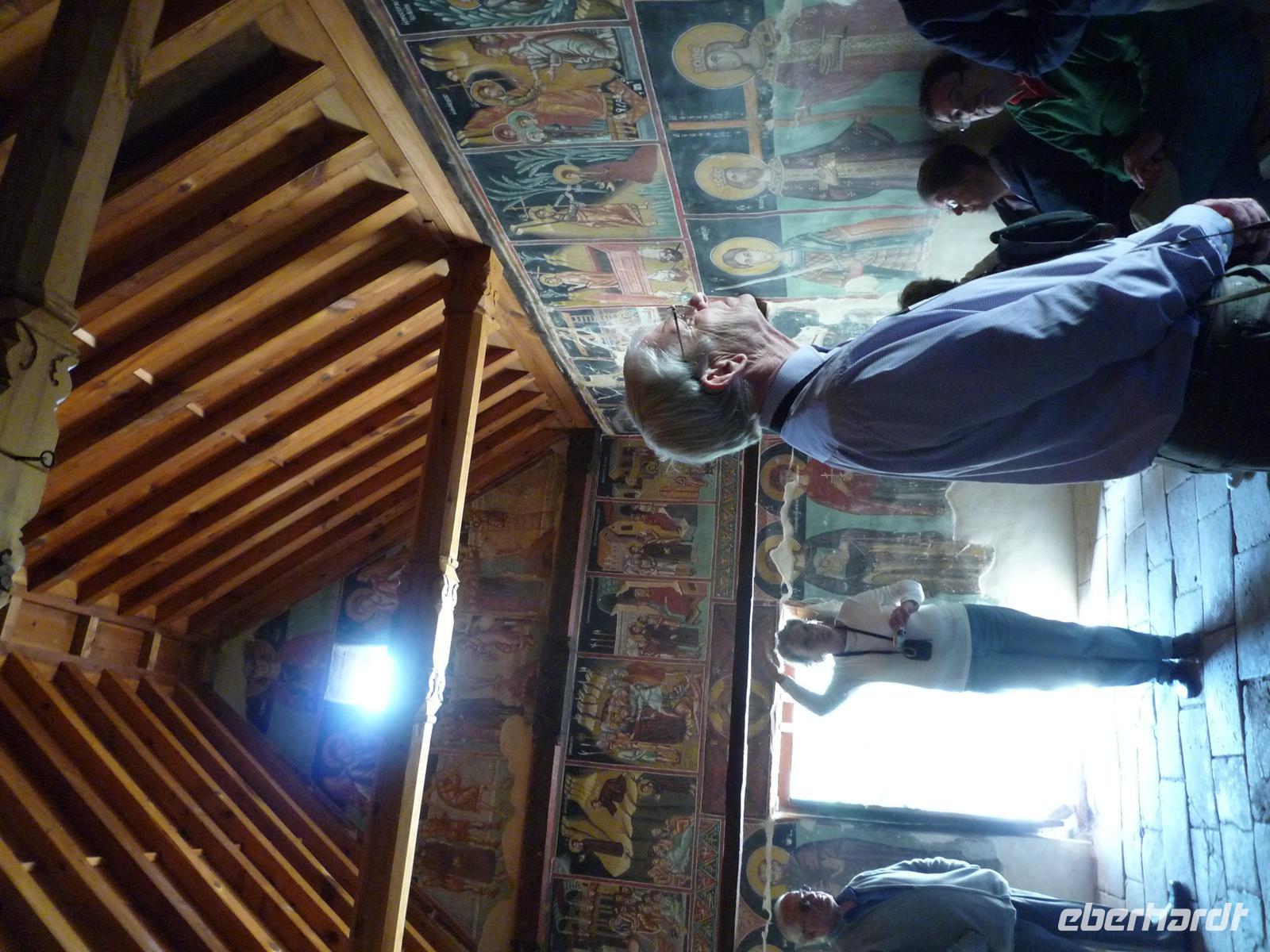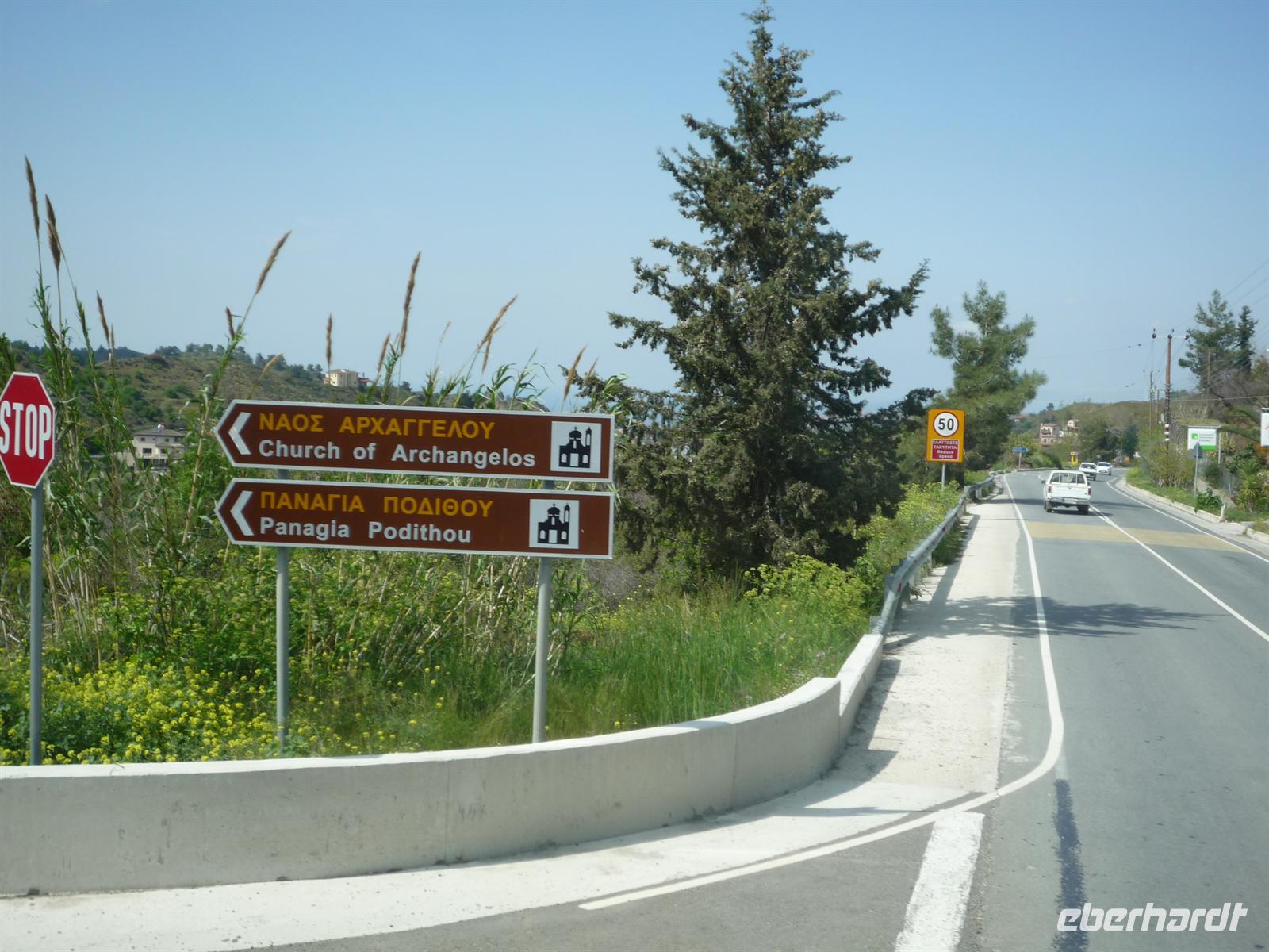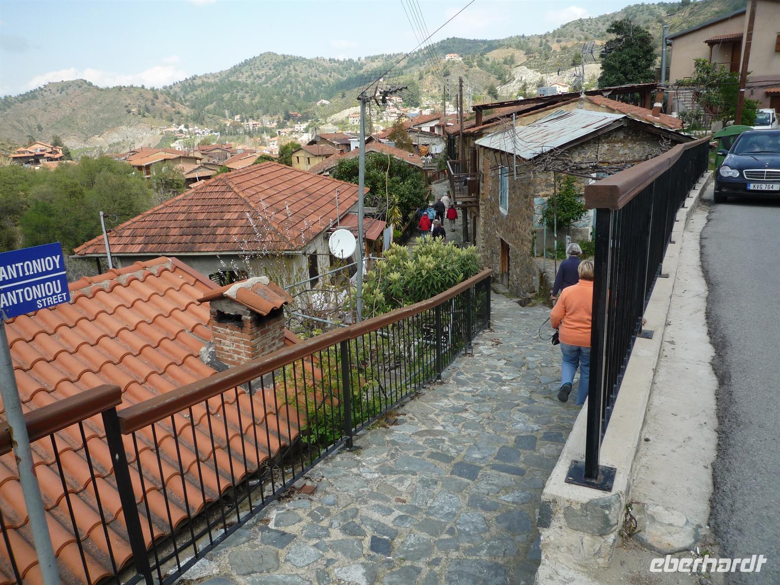Höhepunkte des Tages sind die Besichtigungen dreier Scheunendachkirchen, die unter UNESCO-Weltkulturerbe-Schutz stehen. Anscheinend waren Scheunendächer aufgrund der Witterungsbedingungen in Gebirgslage geeigneter, die Gotteshäuser - zum Beispiel vor den Schneelasten - zu schützen. Oder sollten sie nur wie normale Scheunen aussehen, um nicht feindliche Plünderer anzulocken? Die Kirche des Heiligen Nikolaus vom Dach (Agios Nikolaos tis Stegis) verbirgt unter dem schlichten Scheunendach eine Kirche mit kreuzförmigem Grundriss und Kuppelgewölbe. Die bei Kakopetria nahe beieinanderliegenden Scheunendachkirchen Panagio Poditou und Erzengel-Michael-Kirche haben einfache Grundrisse, zeichnen sich aber durch kunstvolle und teilweise für die Ikonographie untypische ausdrucksstarke Individalität der Figuren aus.