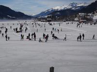 Nach der Rückkunft wird das Pferd belohnt.Eberhardt - Reisebus vor dem Eislaufstadion  -  unsere Reisegruppe drinnen. Vorsichtiger Gang auf glattem Untergrund ist geboten.Blick durch eine Baumallee hindurch zum Chiemsee.Rosenheim -  Bürgerhäuser im Inn-Salzach-Stil, Turm der St. Nikolauskirche.Nomen est omen:  Windbeutel vom Feinsten.
