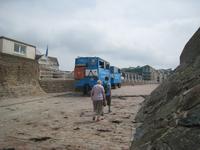 Mit dem Traktor zum HafenKirchenfenster in St. BreladeDer Srtrand von St. MaloditoAls Hauptgang gab es SchinkenWohnhaus mit Terasse