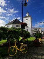 Gimsöy-BrückeAnlegeplatz der Hurtigruten:SvolvaerNobel-Museum und Akademie der Auswahl für den Literaturnobelpreisdie 106 Meter hoher Stadthausturm mit den 3 goldenen KronenIMG_3284.JPG