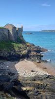 Mit dem Puddleduck gehts zurück nach St. HelierIn dieser Einsiedelei (Hermitage) wohnte der Priester St. HelierFlug mit Lufthansa von Berlin nach MünchenWegweiser zum Küstenwanderpfad bei PlemontKüstenwanderweg zu Greve de LecqCondor-Fähre im Hafen von Guernsey