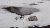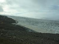 Blick auf das BohrlochGletscherzunge des Vatnajökull