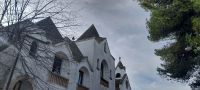 Die Dame friert, die Allee zieht sich durch die Parkanlage.Hier hängt der Himmel voller Salami.Weitläufige GrundstückeDie Familie wurde mit dem Wollhandel reich.Auf welchen der vielen Hinweise soll man hier gucken?Der Innenhof im schönsten Renaissancestil ...
