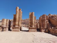 Qasr al-Bint, der Palast der Tochter des Pharao, ist das einzige freistehende Gebäude in Petra und war das Hauptheiligtum der Stadt.Ein Stück weiter ist kaum noch ein Mensch, es ist ganz still. …. diese kufische Inschrift zu sehen, eine frühe Form des Arabischen. Sie stammt aus dem 7. oder 8. Jh..... Arkadengängen ....Das ovale Forum verbindet zwei divergierende Hauptachsen der Stadt geschickt miteinander und bindet das zentrale Zeus-Heiligtum auf eine repräsentative Weise ein.Zwei, die immer noch lächeln - und das seit  6500 v. Chr., im Archäologischen Museum.