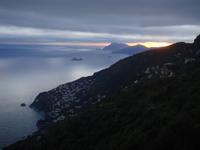 Wenn die rote Sonne bei Capri im Meer versinkt... Wenn die rote Sonne bei Capri im Meer versinkt, kommt die Seele zur Ruhe und wird gestreichelt von warmen Licht. Ein Blick vom Balkon unseres Hotels...
