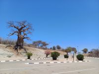 Die Namib Lilly kommt hervor (dem Oryx egal :-))Hier geht's zu den Dinosaurierspuren.unter dem SternenhimmelDer westliche Eingang in den Etosha NationalparkCanyon VillageAbendstimmung