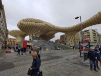 Der Glockenturm der heutigen Kathedrale überdeckt das Minarett der ehemaligen Moschee.Im Königspalast von SevillaEin Toro Bravo der Stierkampfarena von RondaUnter den Gebeinen von Christoph Kolumbus in der Kathedrale von SevillaWir werden ihnen immer wieder begegnen: den ziervollen Pomeranzen-BäumchenEin Meer aus Säulen