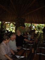 Wie ein Scherenschnitt wirkt diese Palme im Botanischen Garten CienfuegosZu unseren Füßen liegt das Tal der ZuckerrohrmühlenIm HotelvestibülStart zur Fahrt mit der Zuckerrohbahn der ehemaligen Zuckerfabrik AustraliaAnkunft im noch weihnachtlich geschmückten Hotel Panorama in HavannaAbendstimmung in der Bucht von Cienfuegos