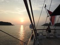 Die Luft riecht nach Meer, es ist still, am Horizont steigt die Sonne als rotglühender Ball am Himmel auf. Der Blick nach oben zeigt weiße Segel im Wind. Ein Morgen auf der Star Clipper - unvergesslich.