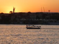 Die Sonne versinkt im NilBauchtanzmode auf dem alten Bazar in KairoSouvenirs auf dem Khan al Khalili BazarReiseleiter Essam (in Position als Ramses)  im Neuen Ägyptischen MuseumVotivgabe König Amenhotep III. im Krokodilmuseum in Kom OmboWie ein Gemälde sind die Abende am Nil