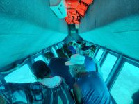 Großer Tropikvogel mit seinem JungtierSchildkröten auf der Insel MoyenneRiesentausendfüßlerIm GlasbodenbootIm botanischen Garten auf PraslinUhrenturm in Victoria