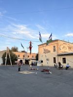 Buchara - Ark AußenfassadeSamarkand - Registan Platz bei NachtSamarkand - Valentina RomanenkoChiva - Statue Jungs beim MelonenessenChiva -Verkaifsstände in Chivaer AltstadtFahrt von Chiva nach Buchara - Mittagspause im Restaurant Zharatun