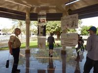 Die Falkenklinik hat sehr schöne Grünanlagen, die liebevoll gepflegt werden, Abu DhabiReiche Emirati haben gleich zwei FalkenUnser letztes Abendessen ist wieder köstlich, Jebel Hafeet, Al AinSeine Hoheiten, oben Sheikh Zayed (bereits verstorben), links Nahyan (aktuell im Amt) und rechts der KronprinzBei der Fischabteilung faszinieren natürlich die Schrimps. Wir bekommen Hunger. Eingang zur Gebetshalle in der Sheikh Zayed Moschee in Abu Dhabi