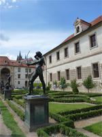 Prägend für die Prager Neustadt sind breite Straßen mit hohen HäuserfassadenHübscher Spiegel im Wallenstein-PalastWallenstein-GartenBlick von der Burgrampe über Kleinseite und NeustadtKinderzimmer im Schloss MelnikUfer von Altstadt und Neustadt mit dem Nationaltheater bei Nacht